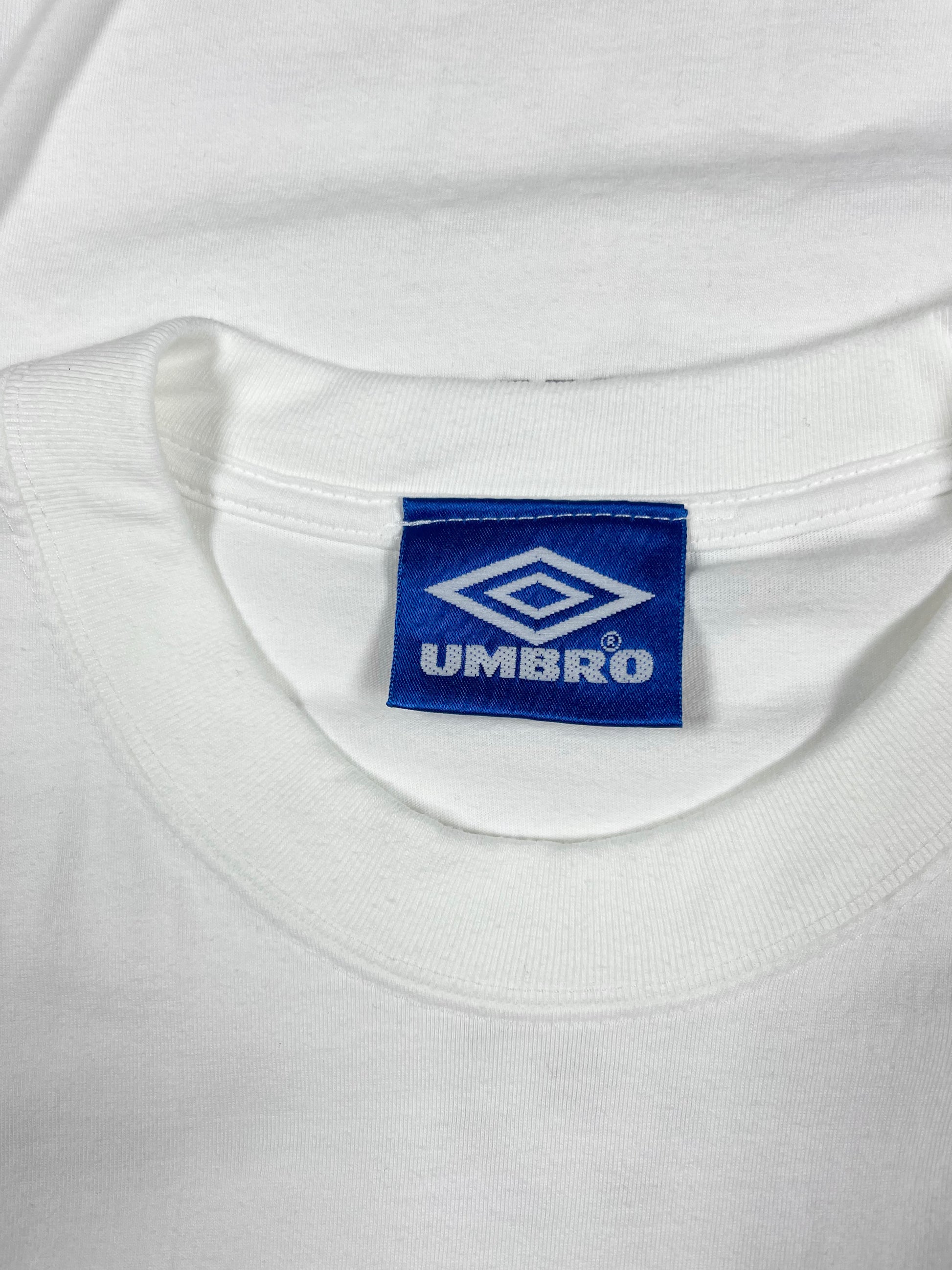 ⚽️ Umbro T-Shirt 1999 European Champions Manchester United 2 Bayern Munchen 1 UEFA Champions League Barcelona Sheringam Solskjaer Basler Size XL White