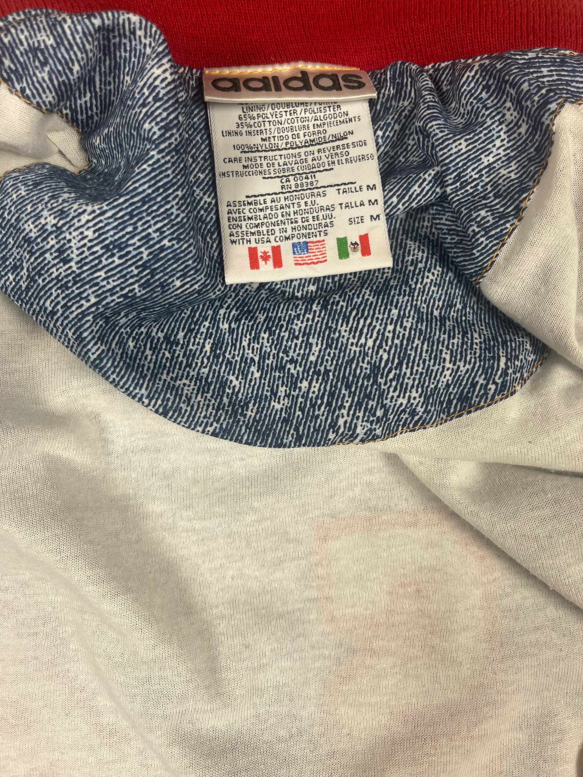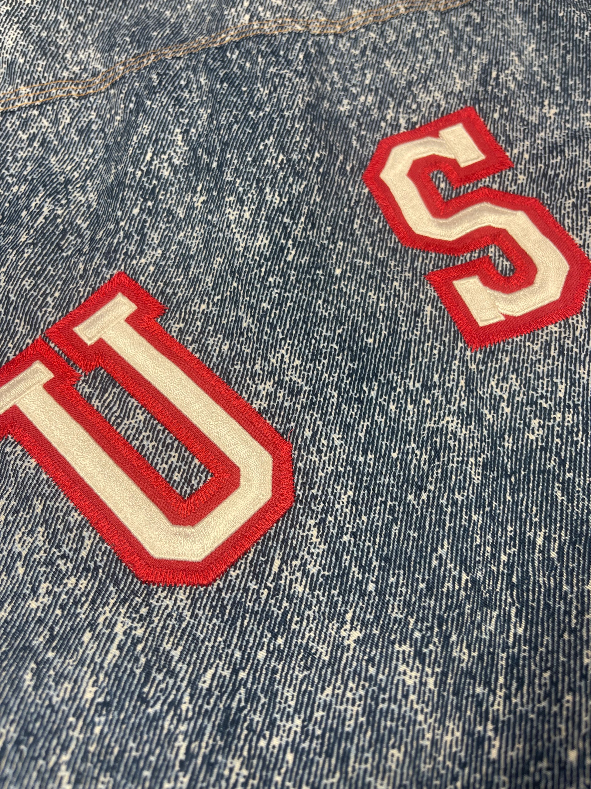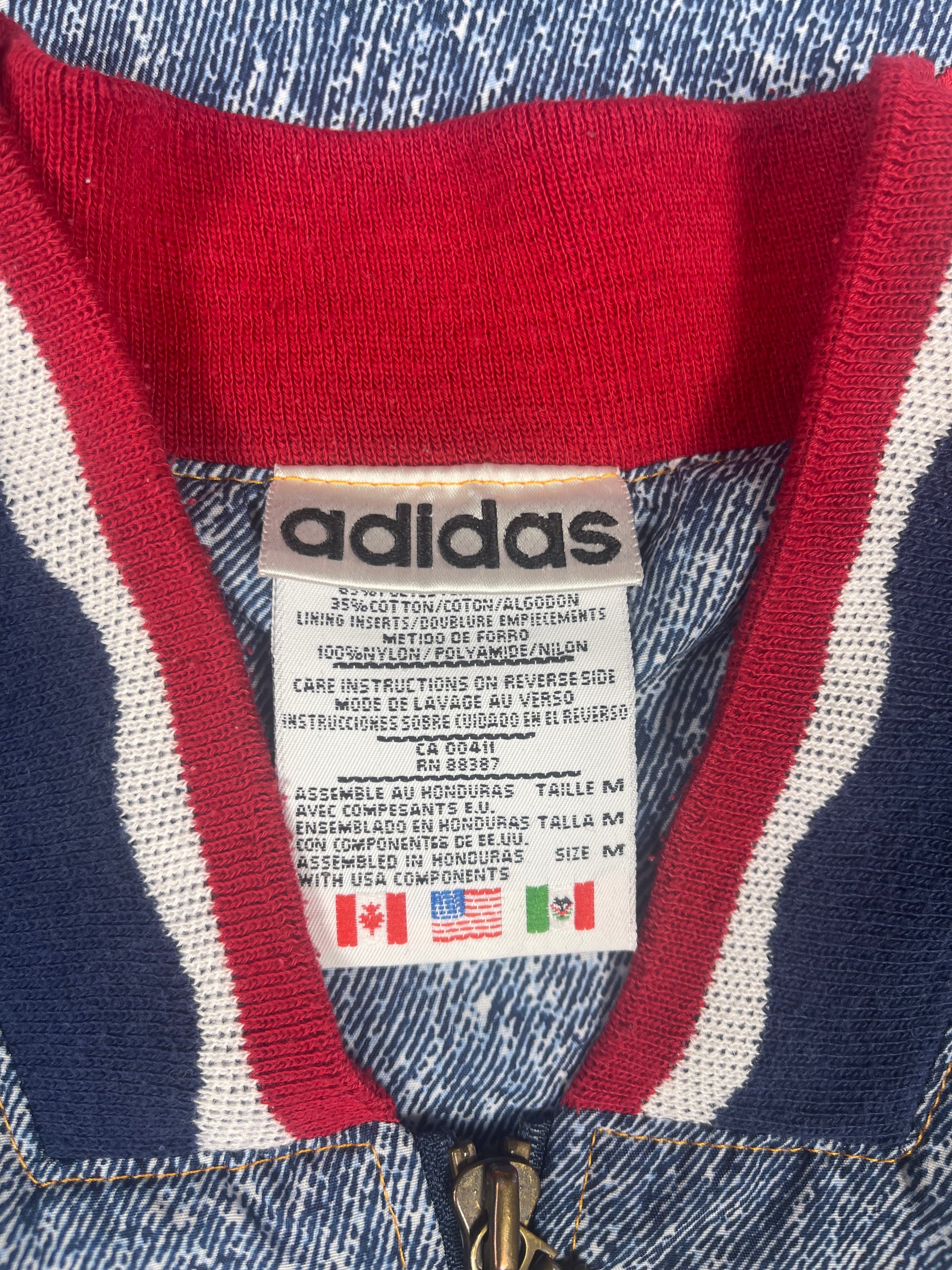 💎 ⚽️ 🇺🇸 Vintage Iconic Rare Grail 1994 USA World Cup Adidas Football Soccer Jacket Cotton Polyester Red Blue White Denim Pattern
