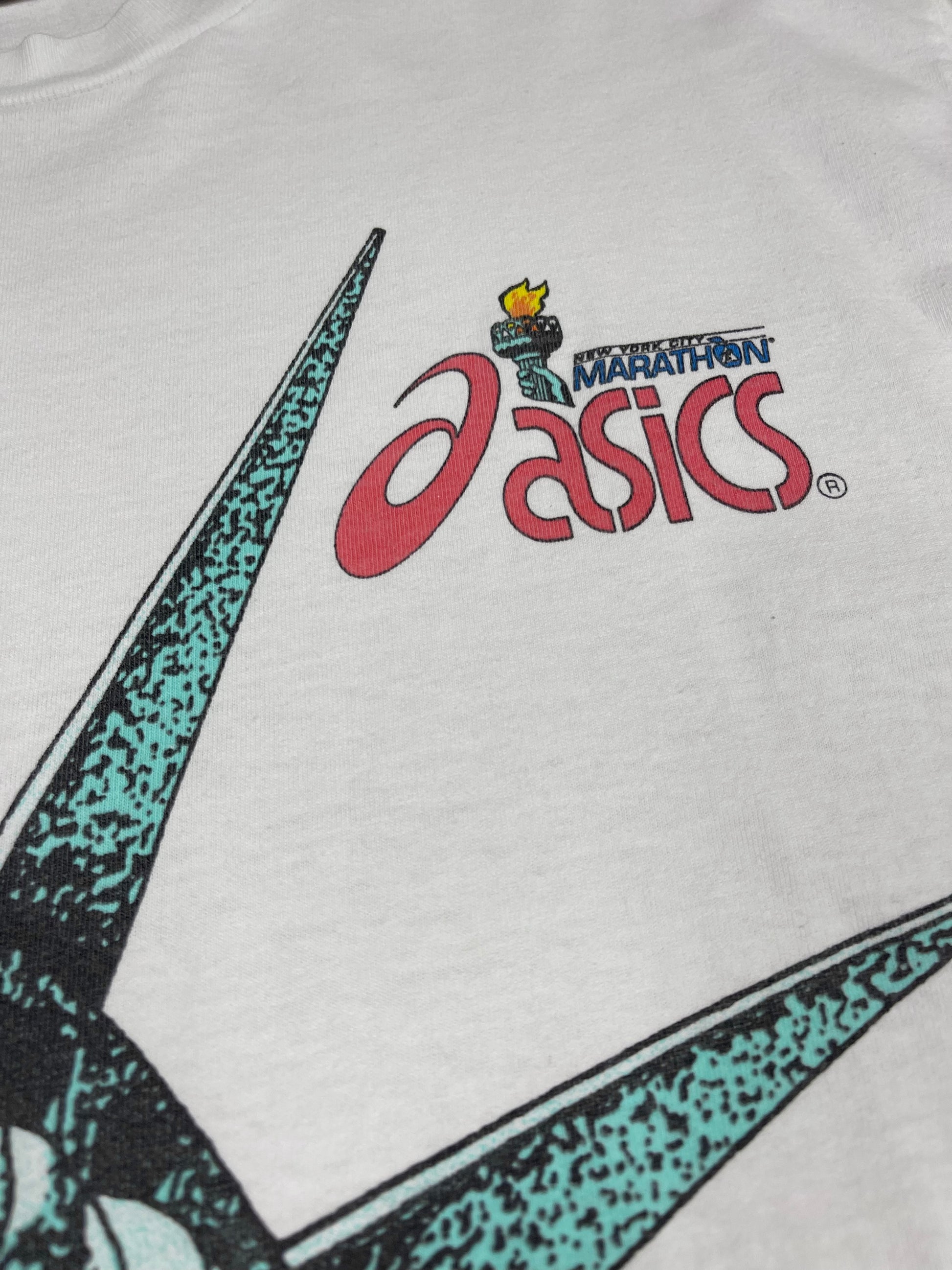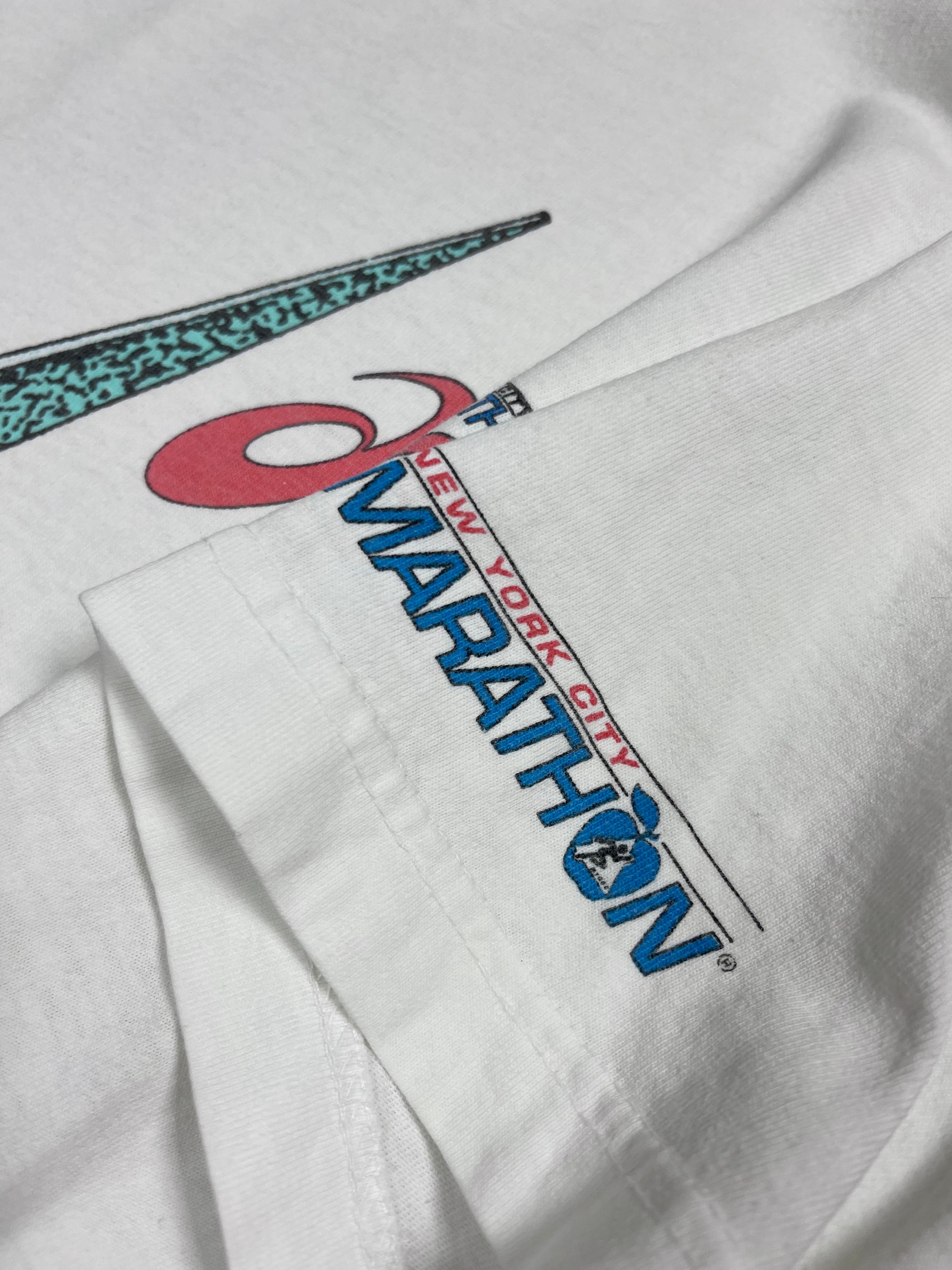 Vintage Asics New York Marathon Running 1993 T-Shirt Graphic Tee White Made in USA The Statue of Liberty Size M