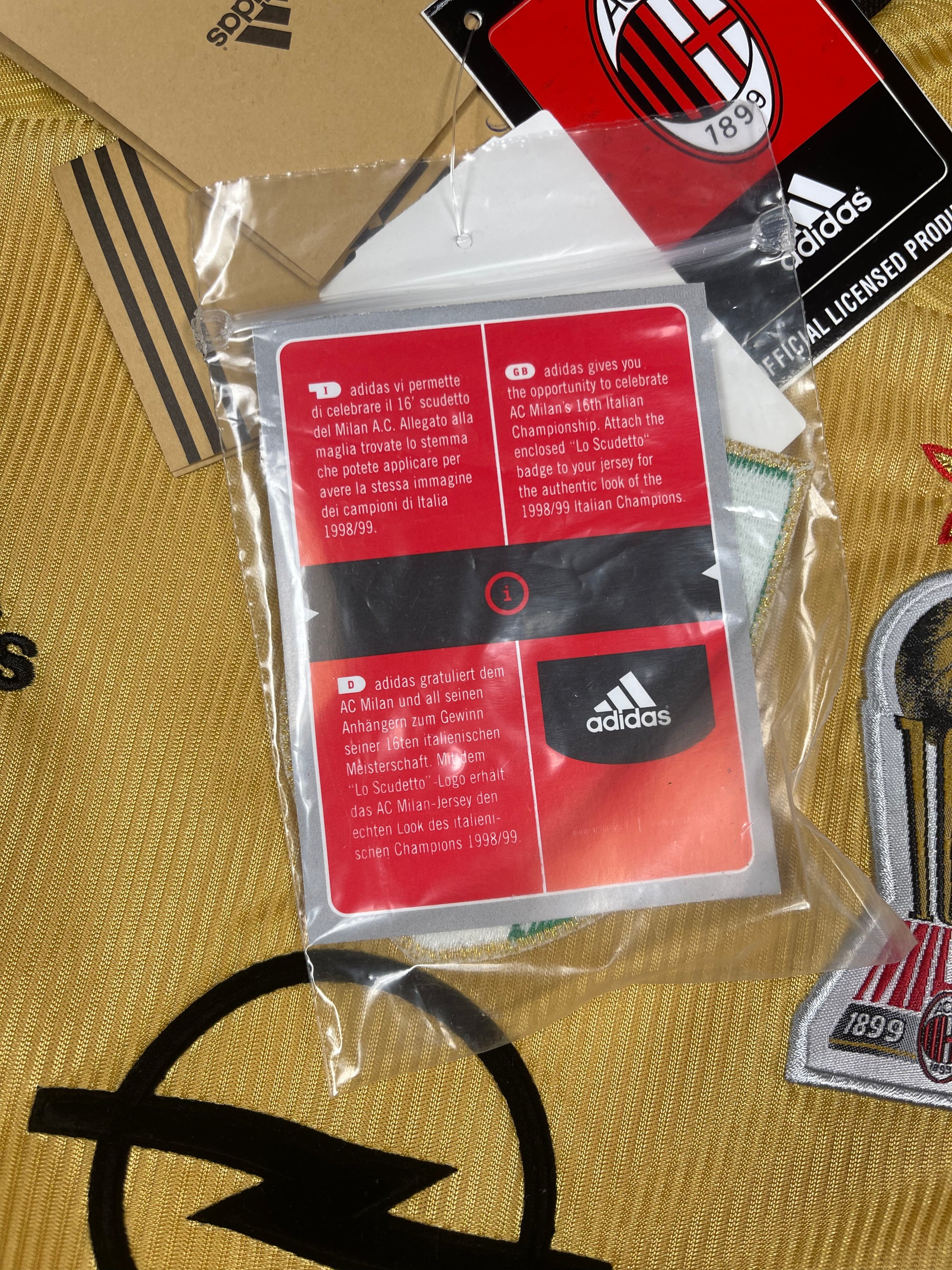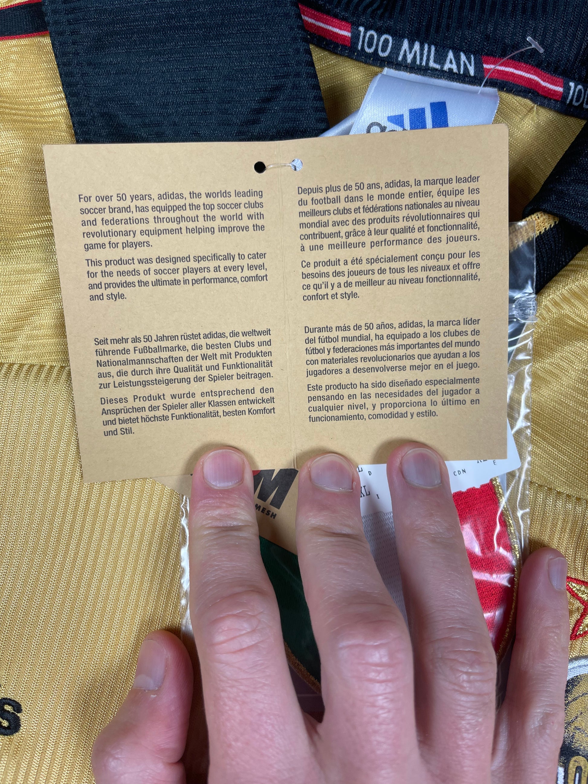 BNWT New Vintage Authentic AC Milan Adidas 1999 - 2000 Fourth Football Shirt Anniversary Centenary 1899 1999 OPEL Size XL Made in Italy Gold Climalite Deadstock