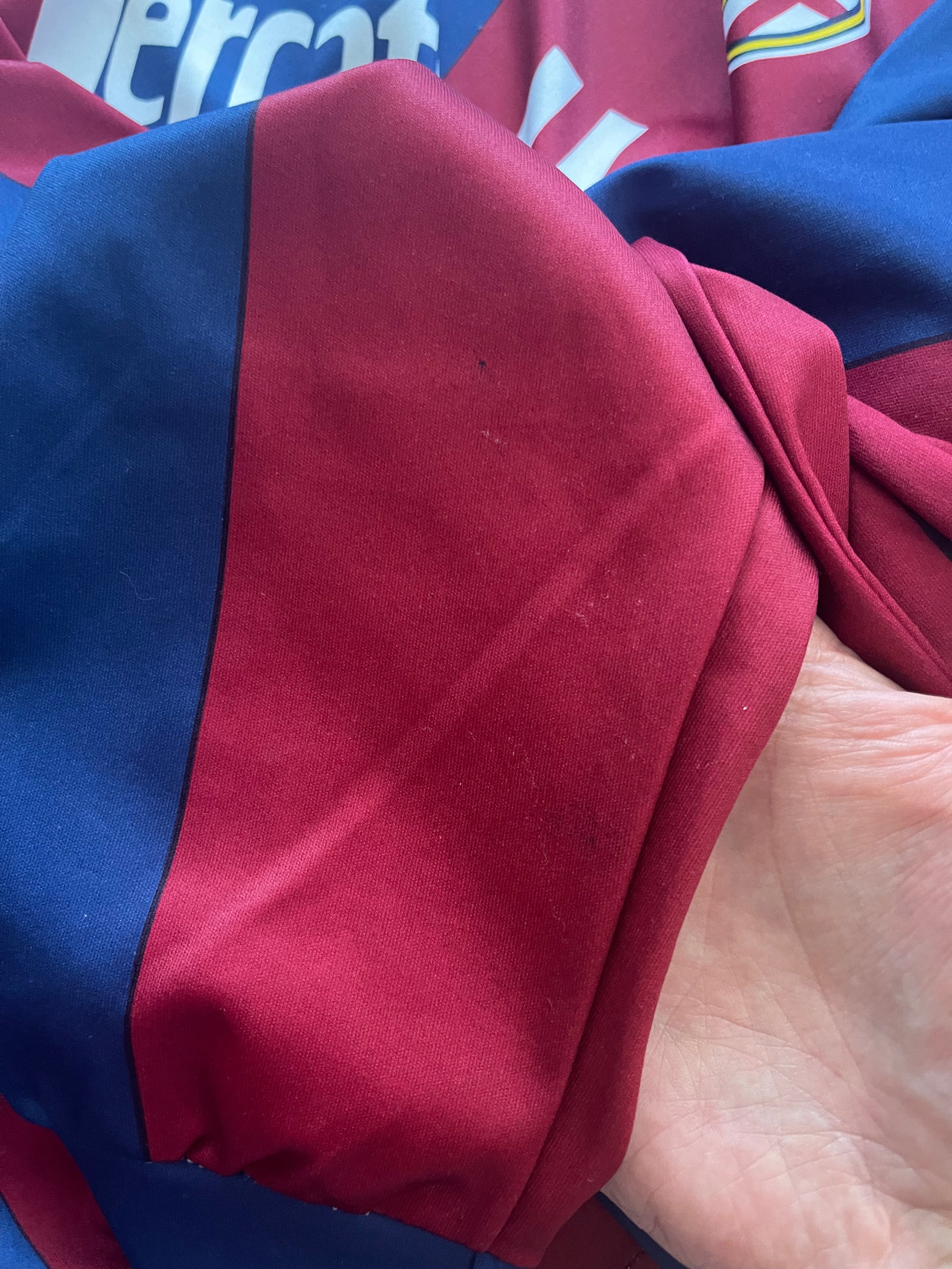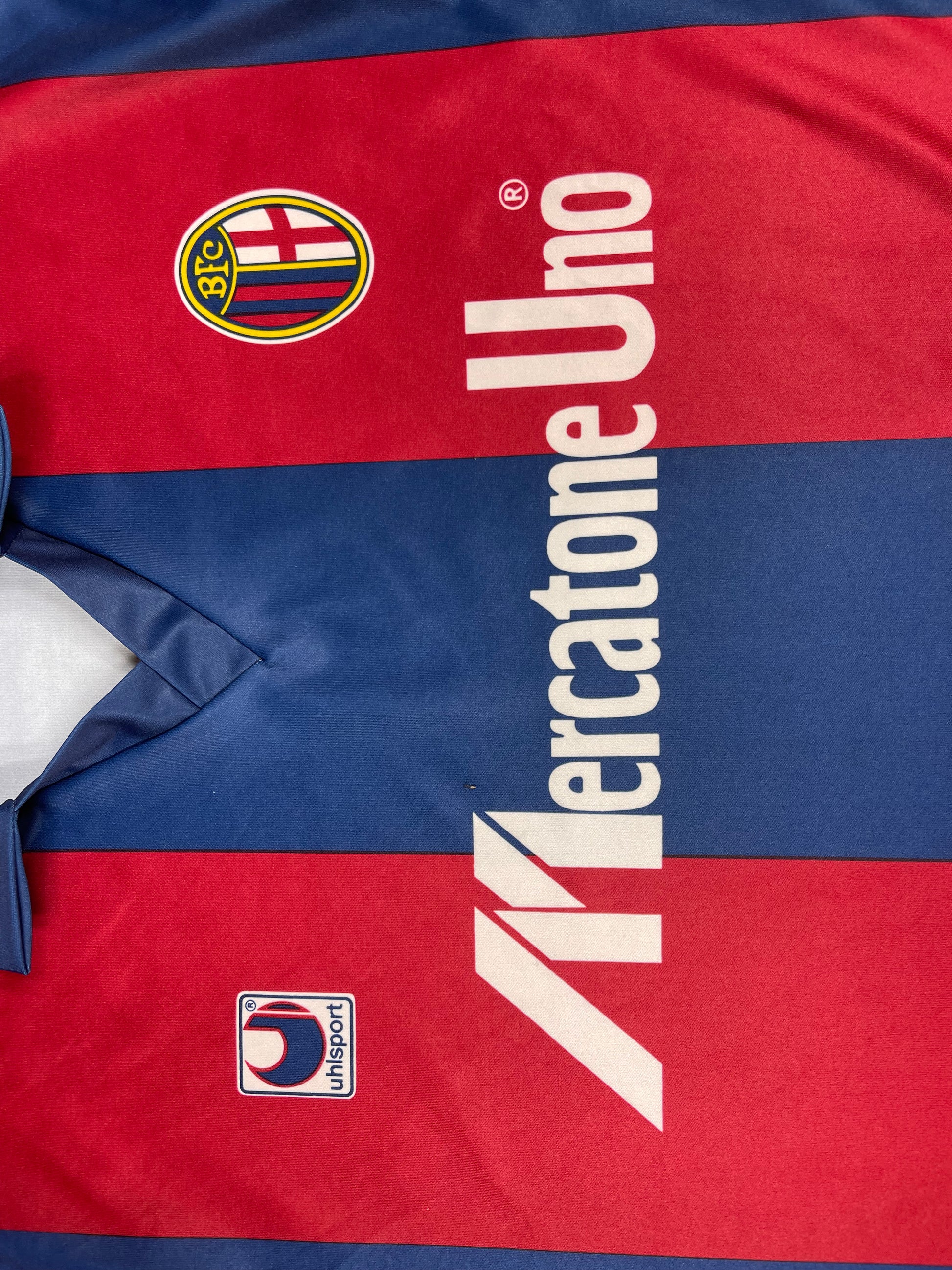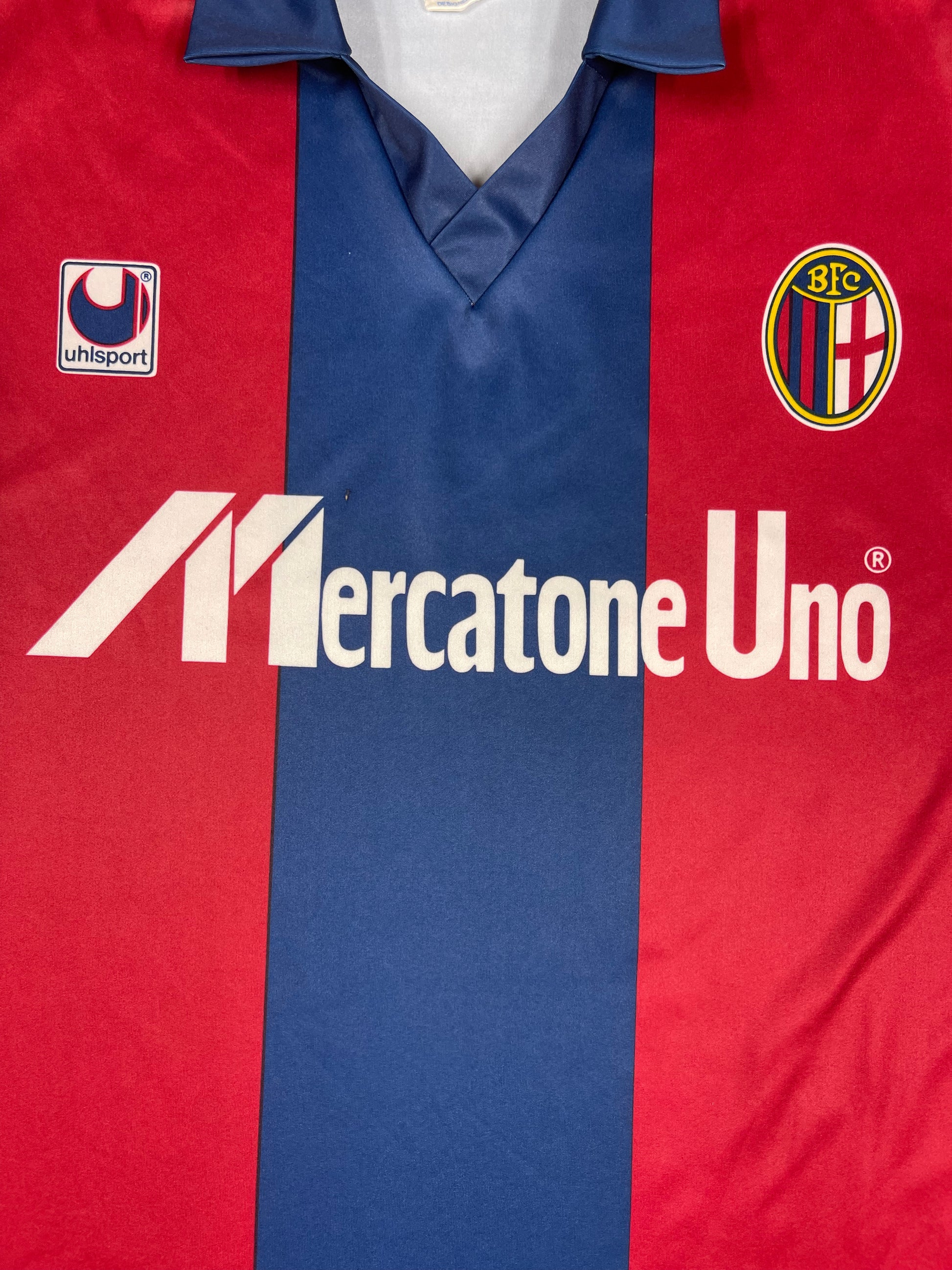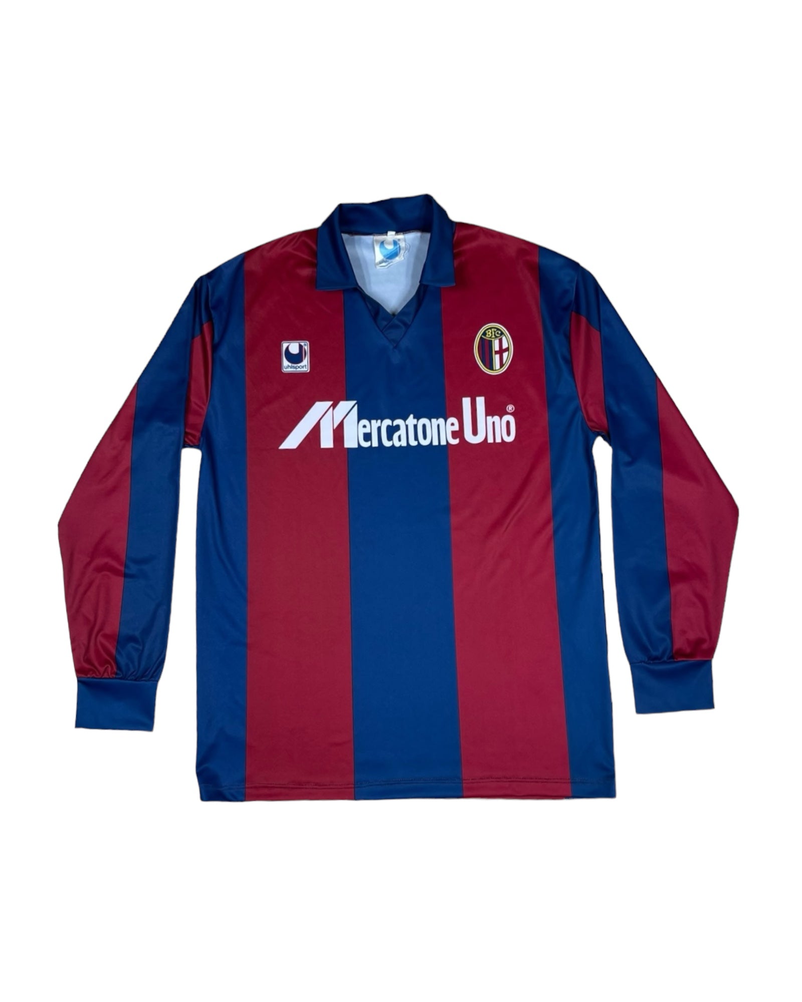 Vintage Bologna Uhlsport 1990 -1991 Home Football Shirt Size L Made in Italy Mercatone Uno Red Blue Long Sleeve
