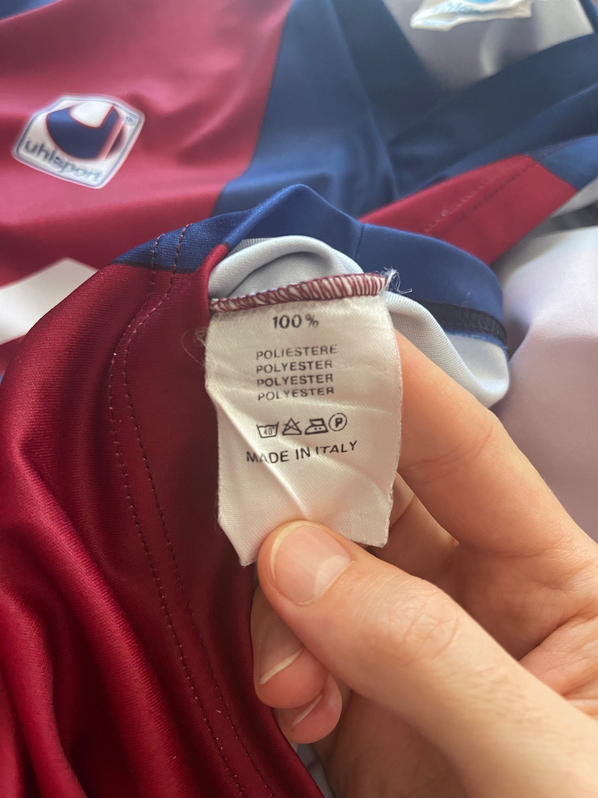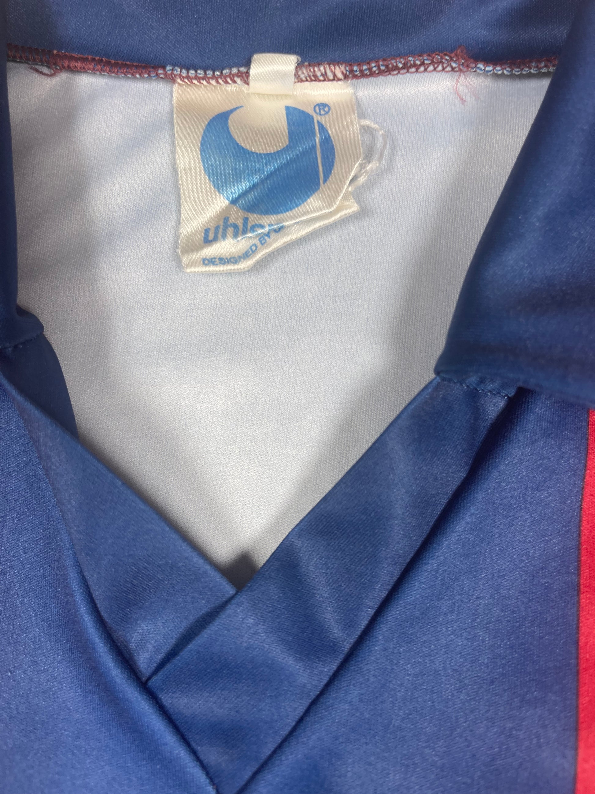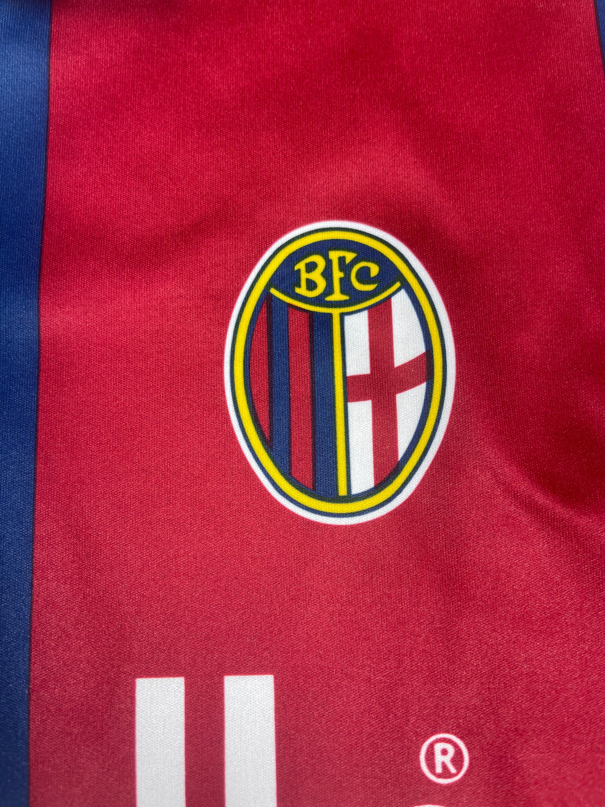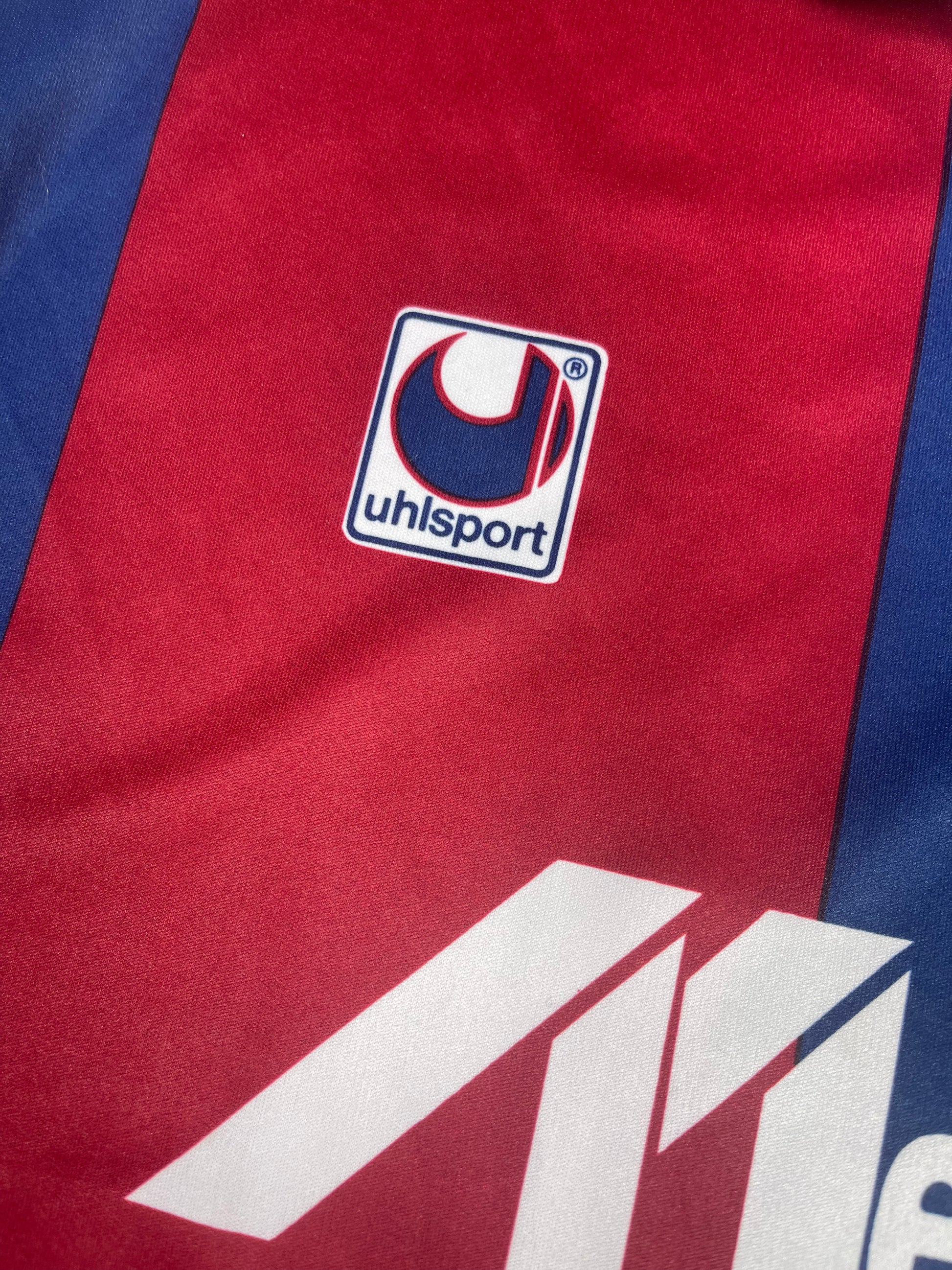 Vintage Bologna Uhlsport 1990 -1991 Home Football Shirt Size L Made in Italy Mercatone Uno Red Blue Long Sleeve