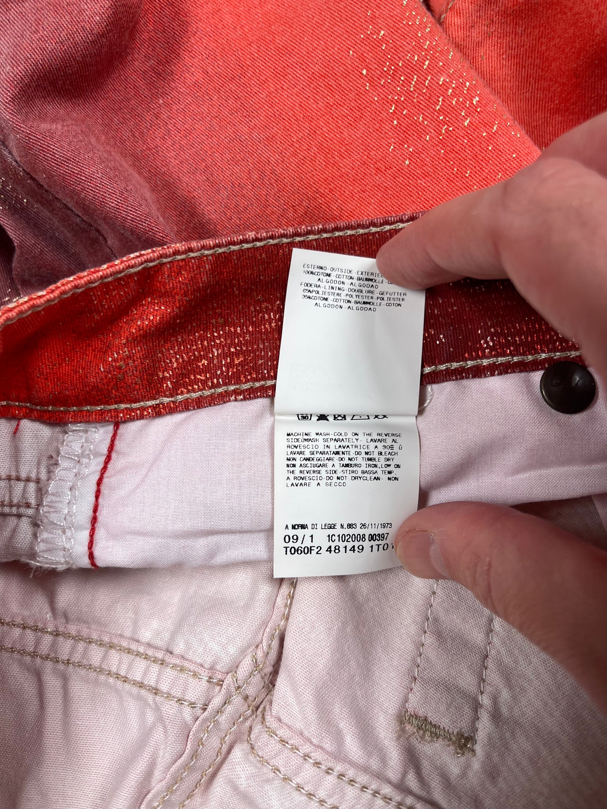Y2K Just Cavalli Pants Made in Italy Very Low Waist Sunset Orange Pink Gold Shimmer Accents Size M-L