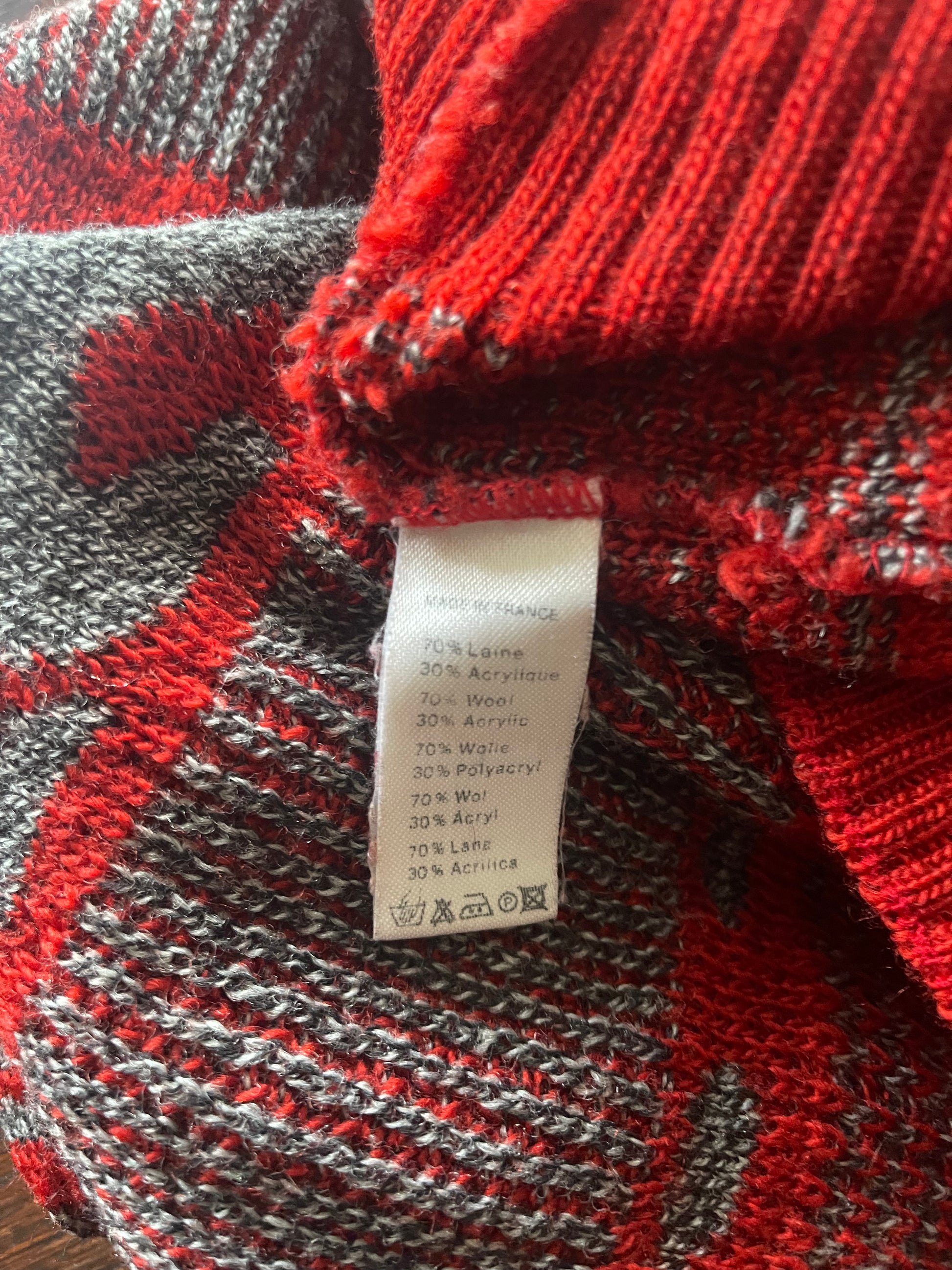 80's Vintage Lacoste Chemise Jumper Made in France Bears Grey Red Wool Acrylic Size 5 L-XL