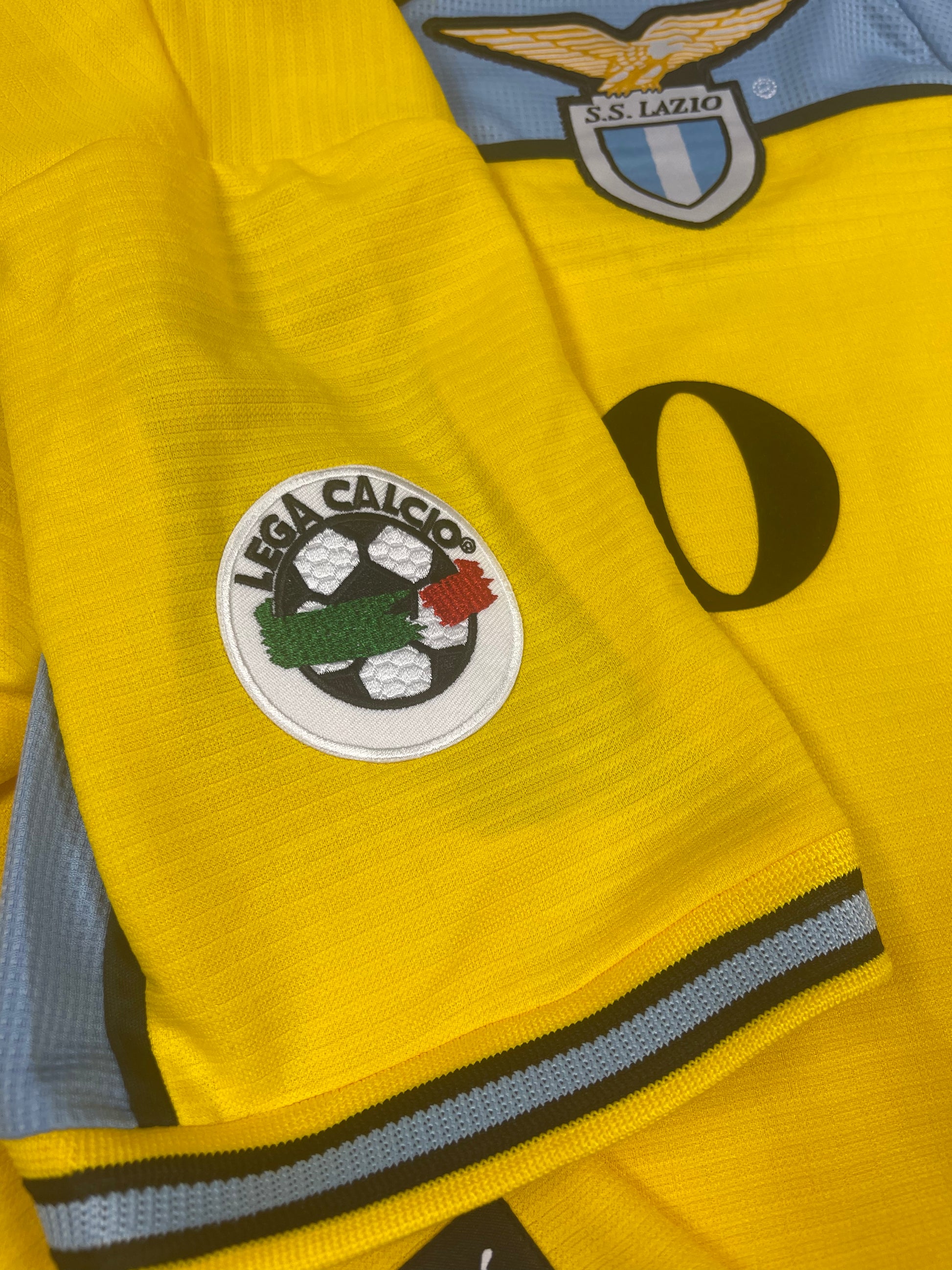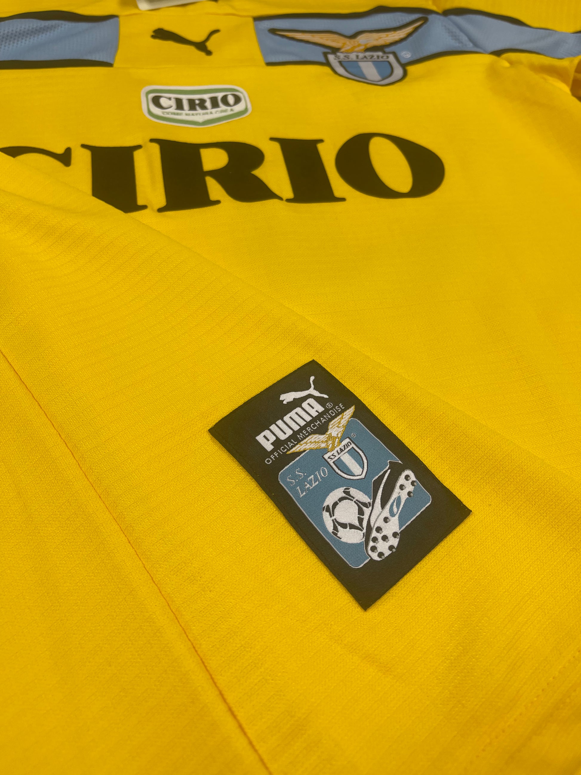 New Authentic S.S. Lazio Roma Puma Dry Cell Christian Vieri No 32 1998 - 1999 Away Third Football Shirt Size L Cirio Yellow Blue BNWT Deadstock NOS