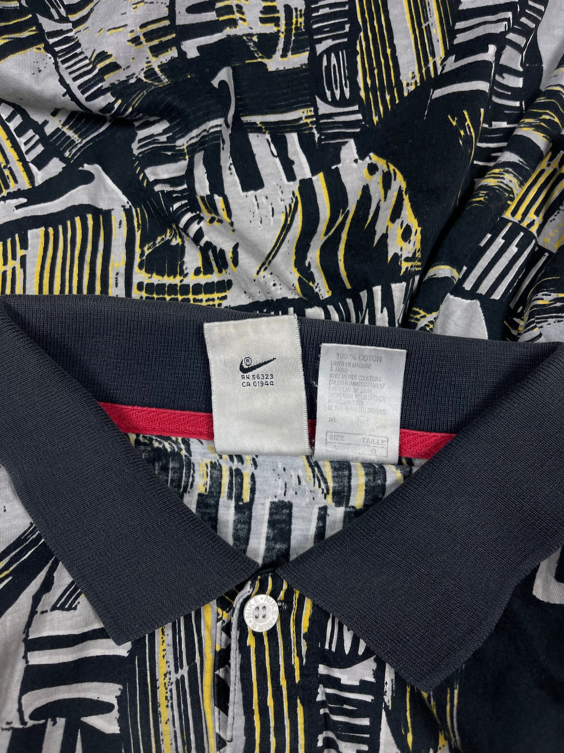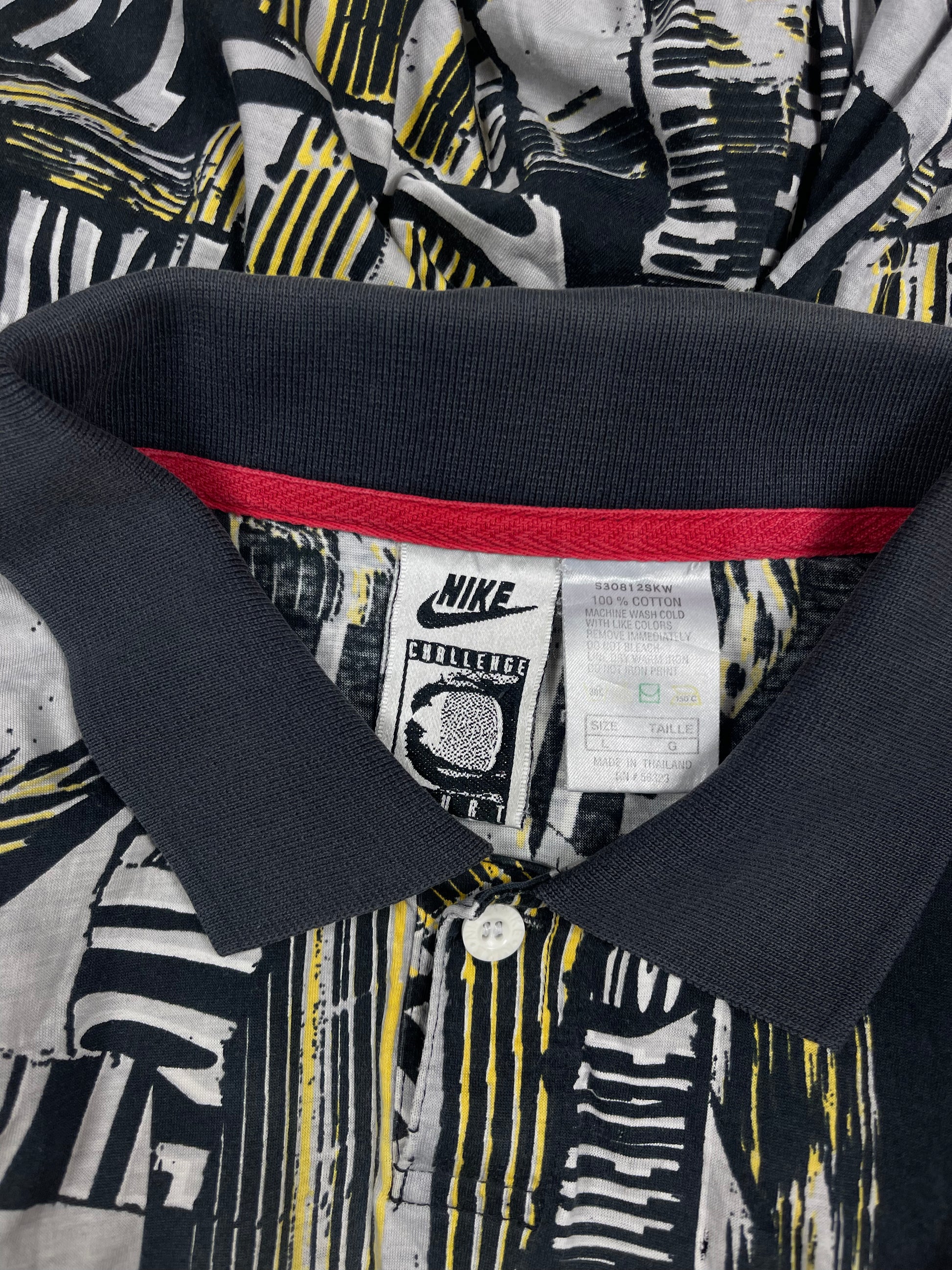 Vintage 90's Nike Challenge Court Polo Tennis Shirt Andre Agassi Size L Abstract Pattern