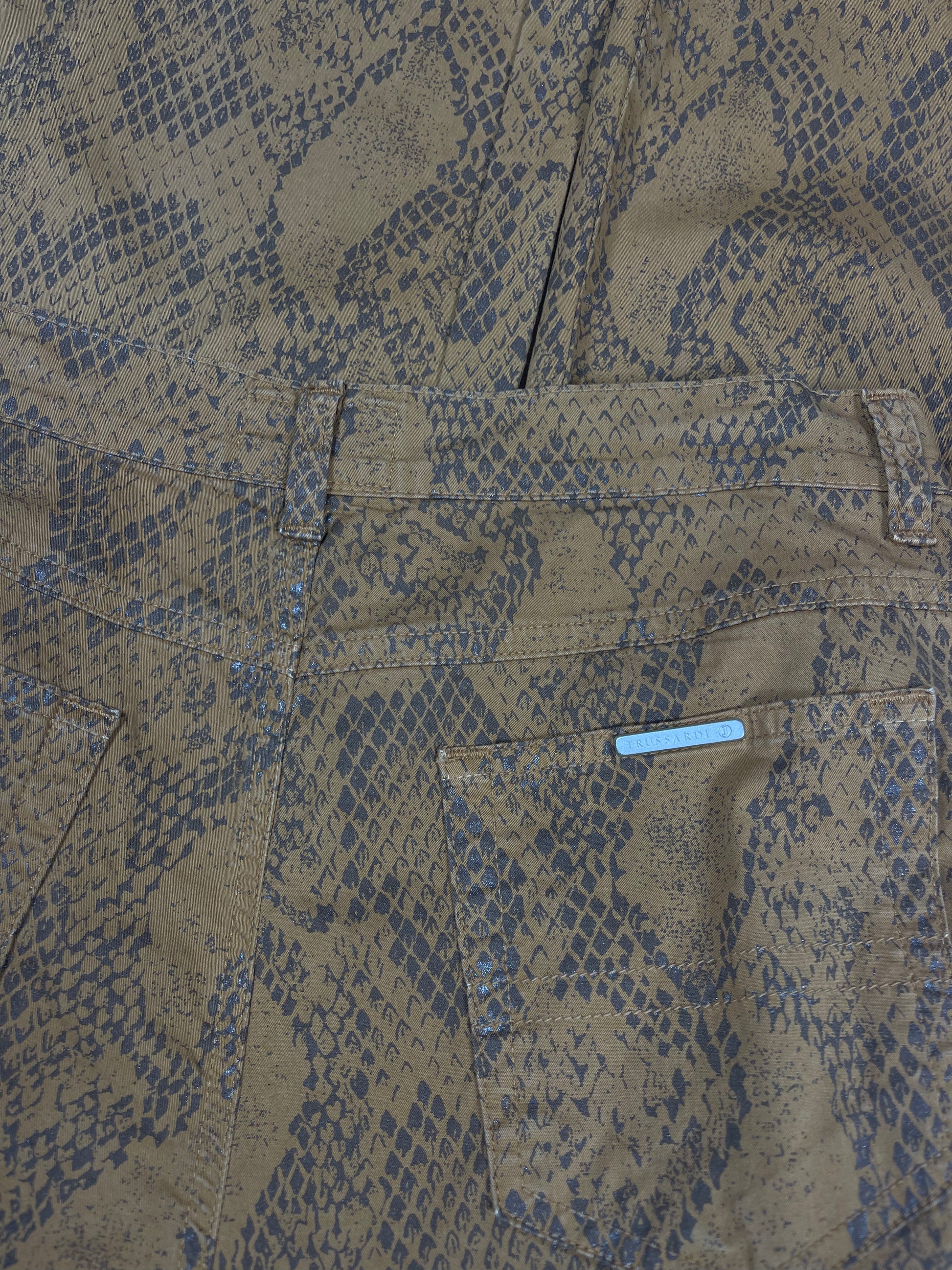 Vintage Trussardi Thin Jeans Pants Trousers Made in Italy Reptile Snake Skin Pattern Mid Rise Waist Straight Leg Silhouette Size S