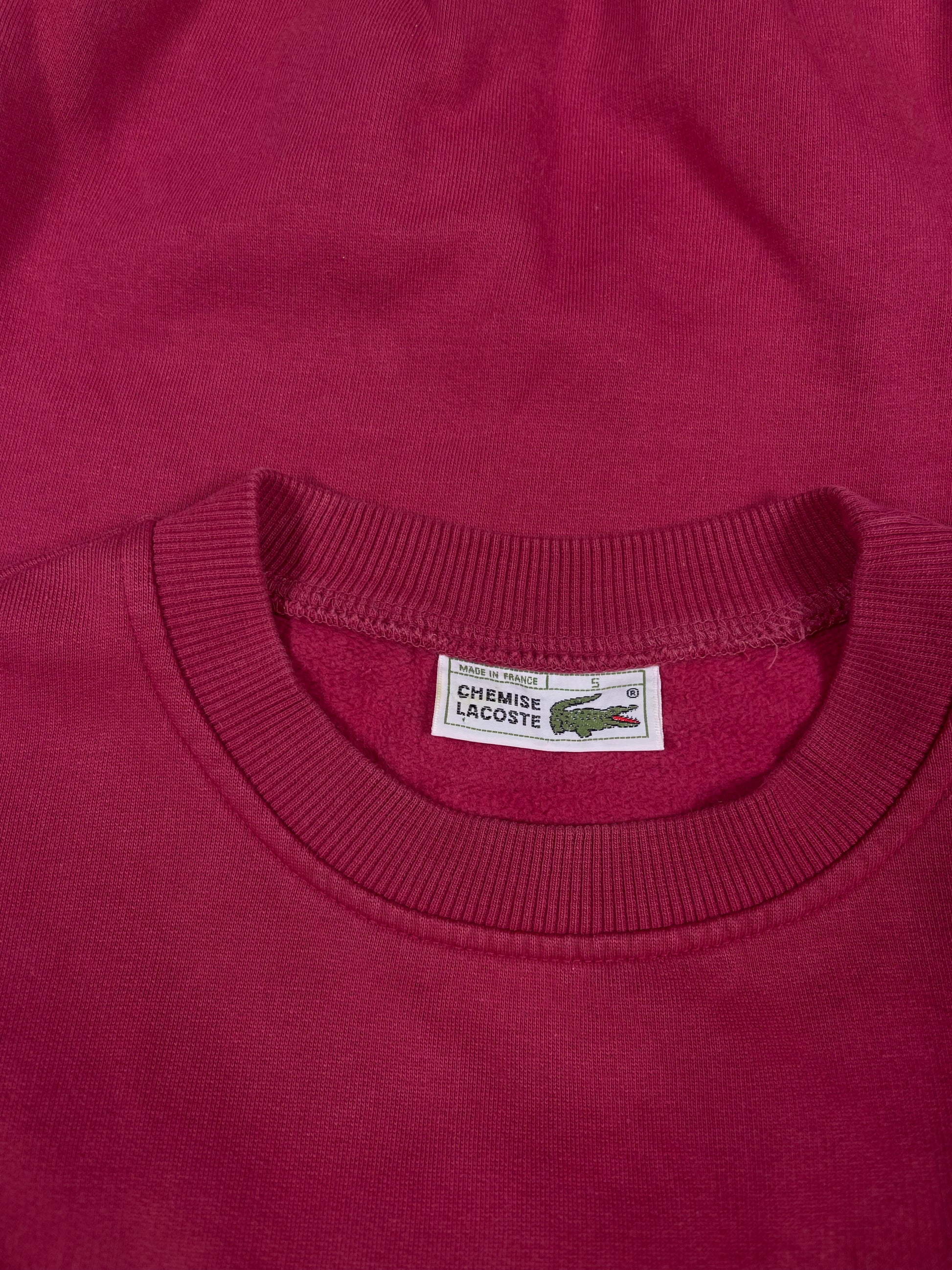 Vintage 80's Lacoste Chemise Boxy Embroidered Sweatshirt Crew Neck Burn Burgundy Size S - M Made in France 100% Cotton