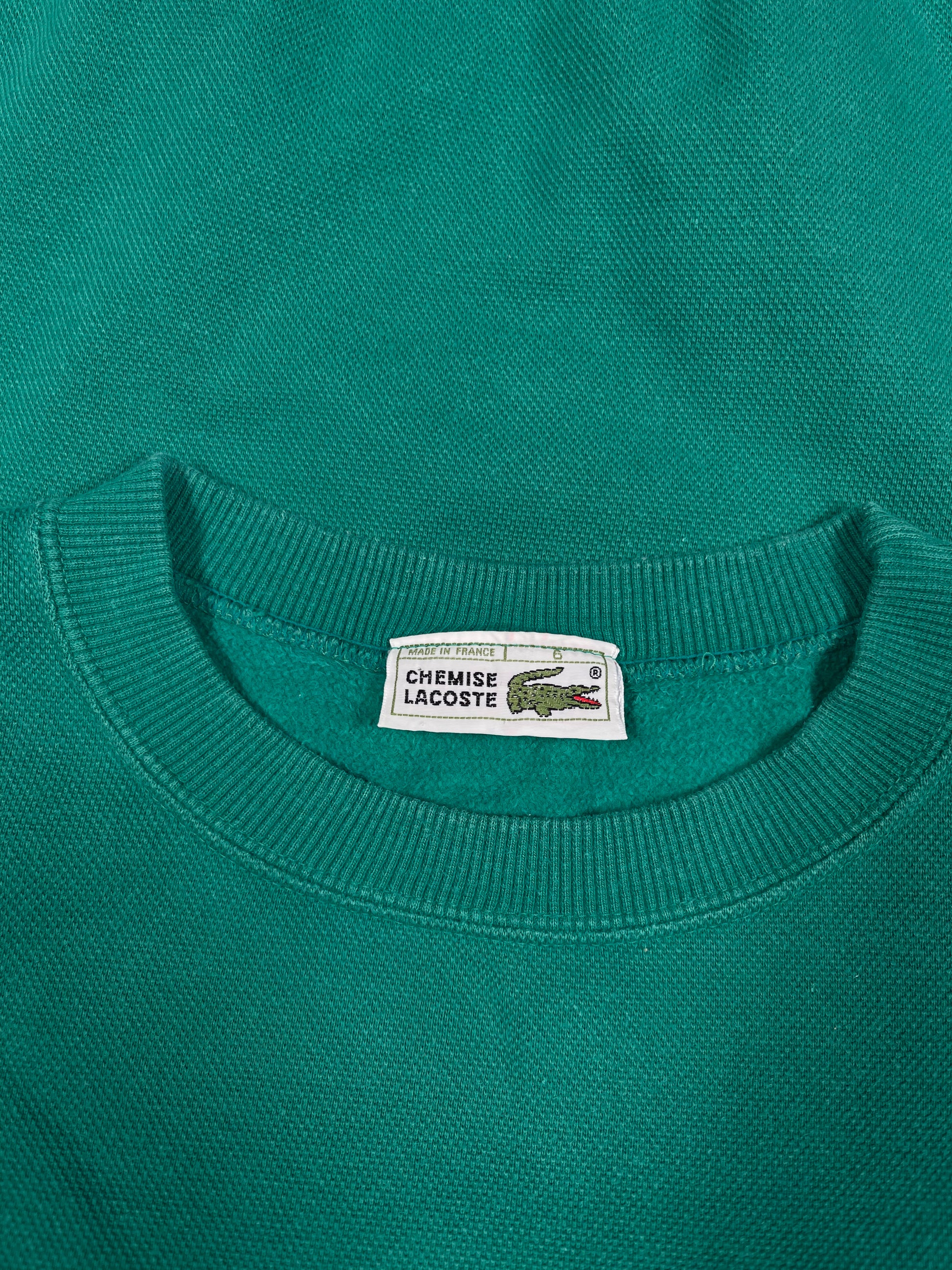 Vintage 80's Lacoste Chemise Sweatshirt Crew Neck Green Size M - L Embroidered Crest 100% Cotton