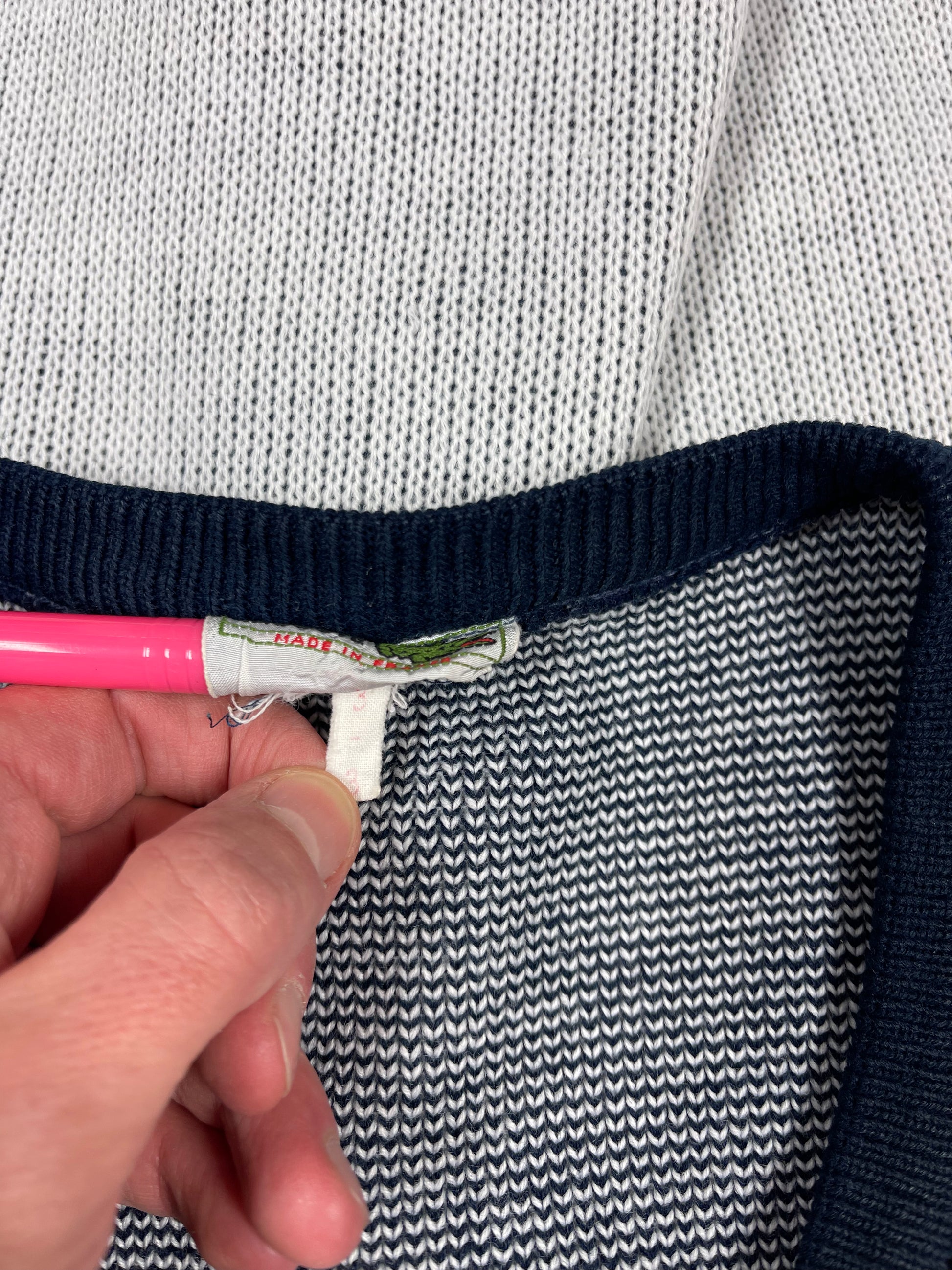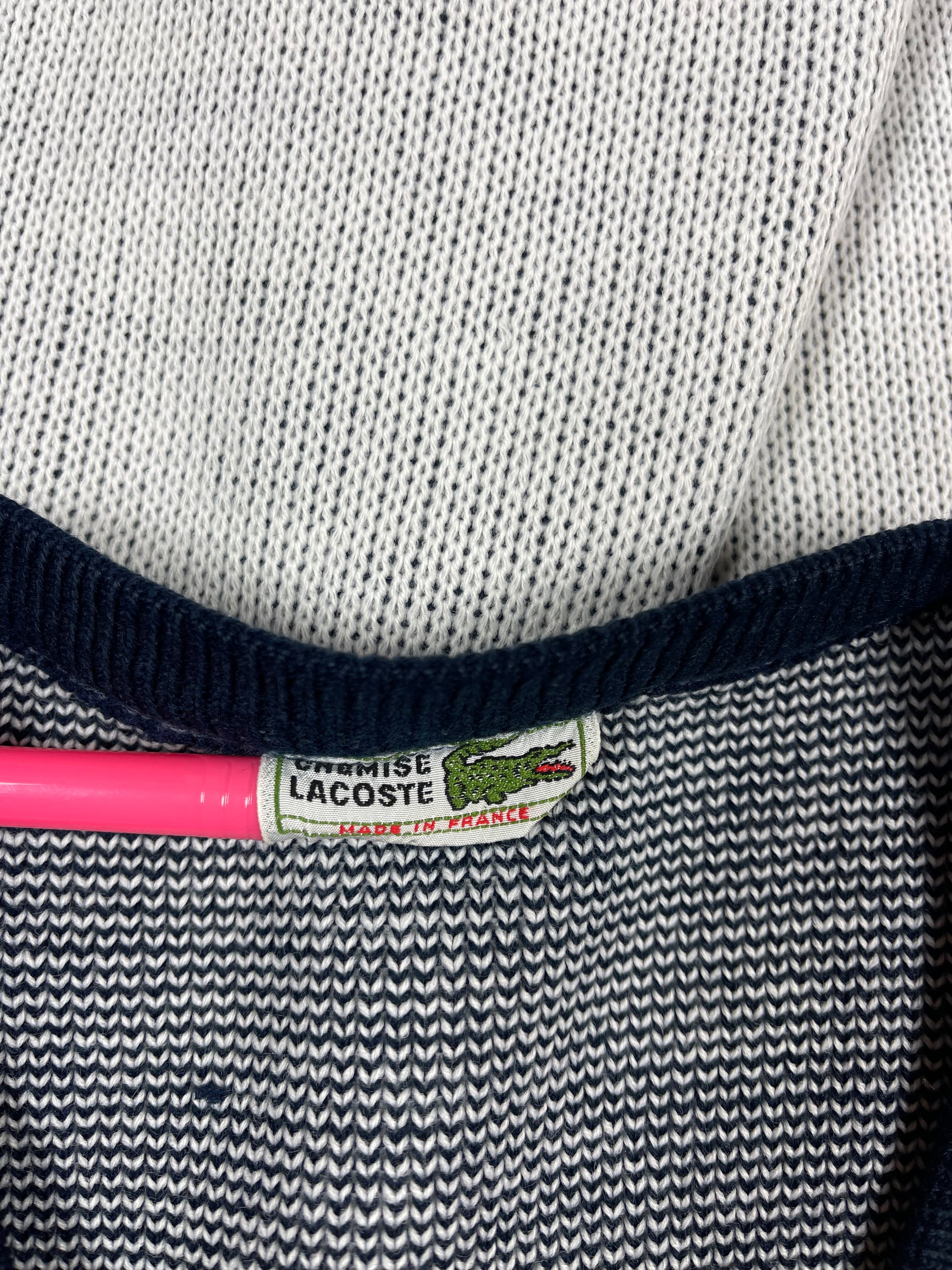 Vintage 80's Lacoste Chemise Vest Made in France Acrylique Size S-M Big Logo Navy Blue Grey
