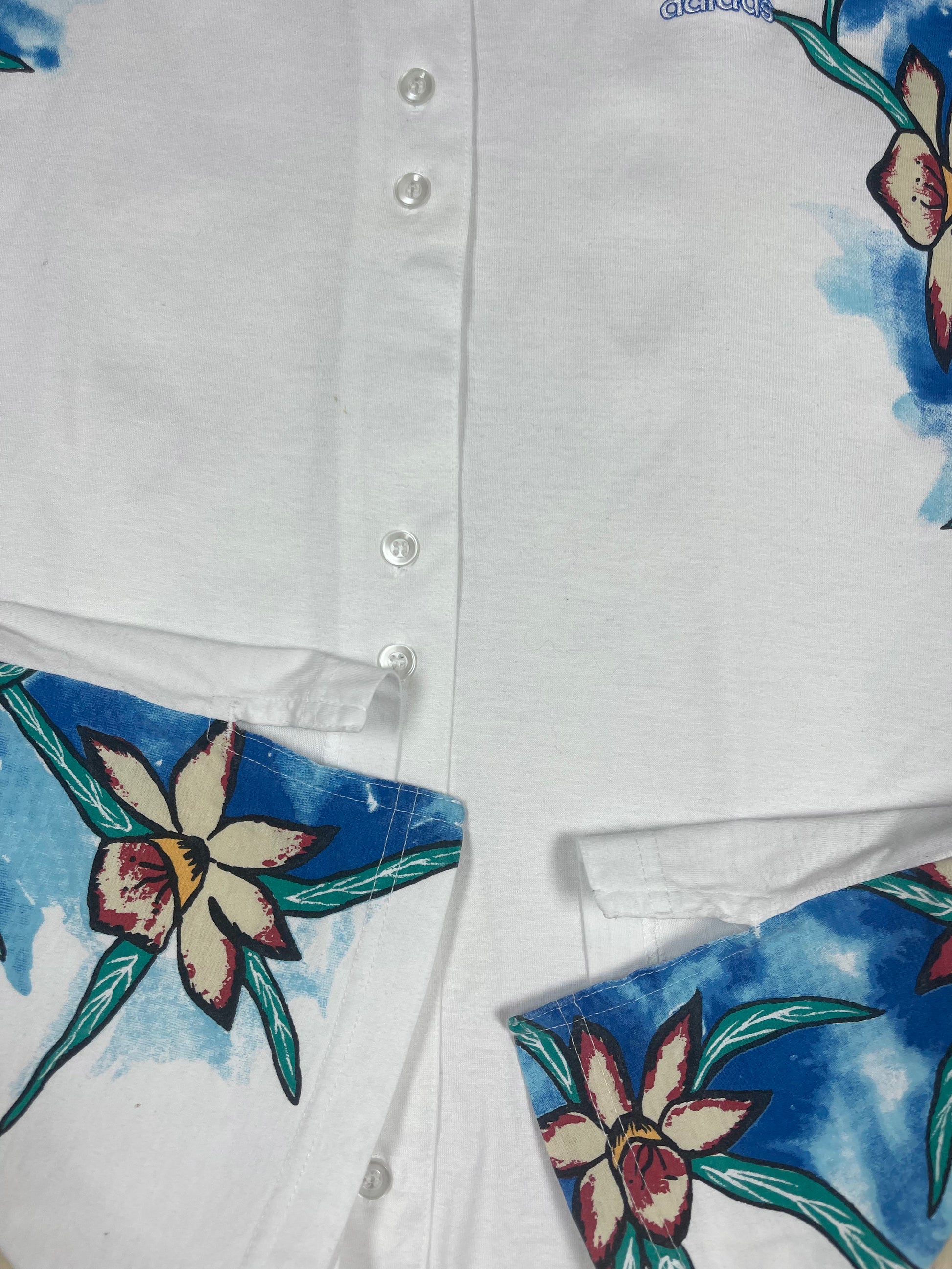 Vintage 90's Adidas Steffi Graf Tennis Shirt Floral Botanical Pattern Cotton Size M-L