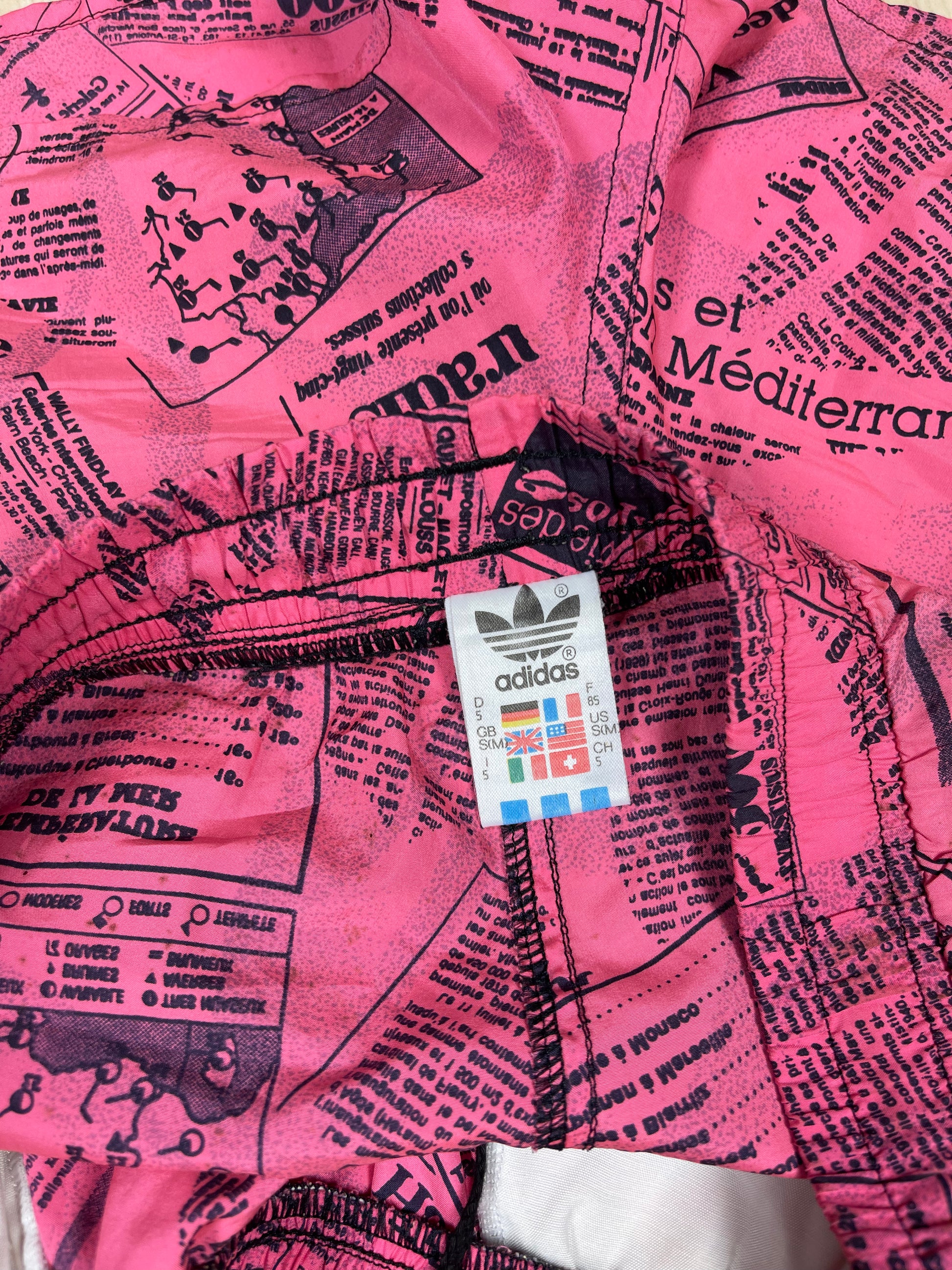 Vintage 90's Adidas Take Off Shorts Newspaper Pattern Size M - L Candy - Pink 7936