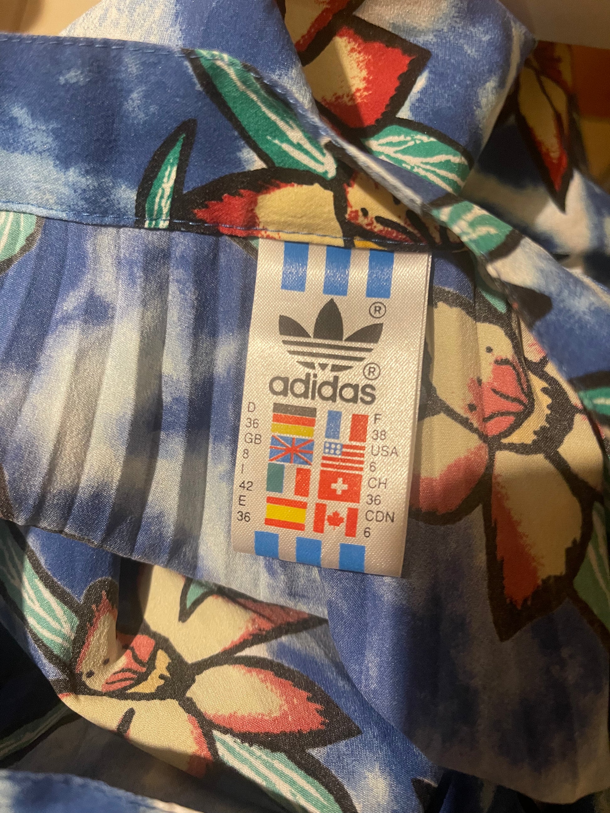 Vintage 90's Adidas Steffi Graf Tennis Pleated Skirt Style Collection Flowers Botanical Tropical Blue Polyester Size XS - S