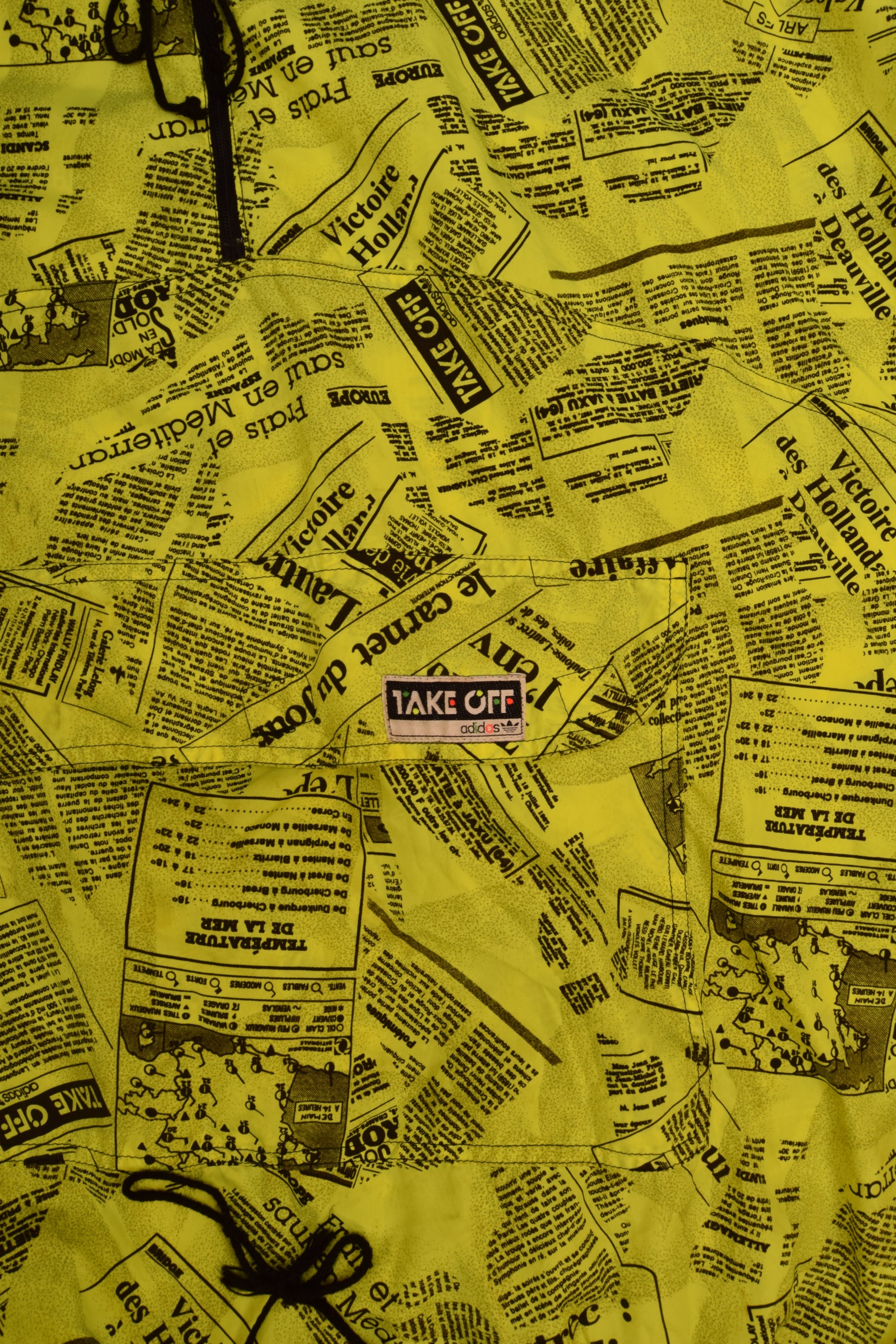 Vintage Adidas Take Off Jacket Shell NewsPaper 1/4 Zip Fluorescent Neon Yellow Size M L