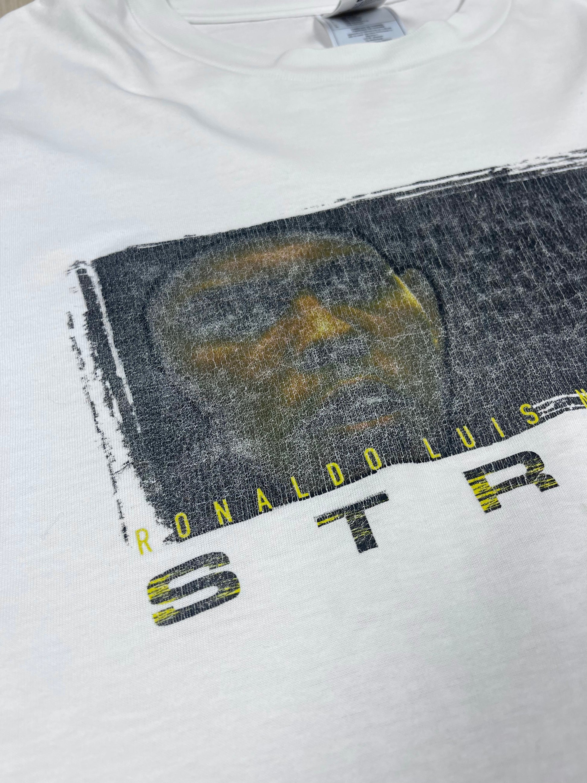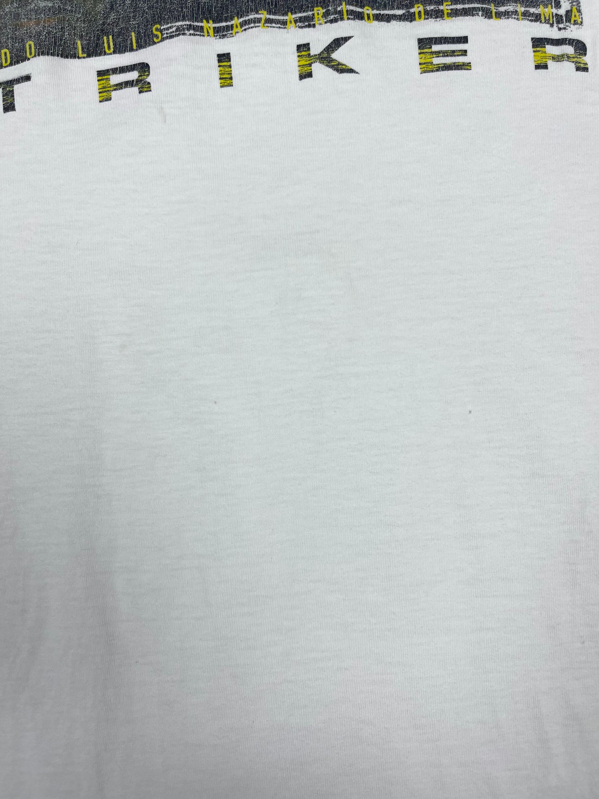⚽️🇧🇷Vintage 90's Ronaldo Luis Nazario De Lima Il Fenomeno R9 Nike Striker T-Shirt White Cotton 100% Size M - L