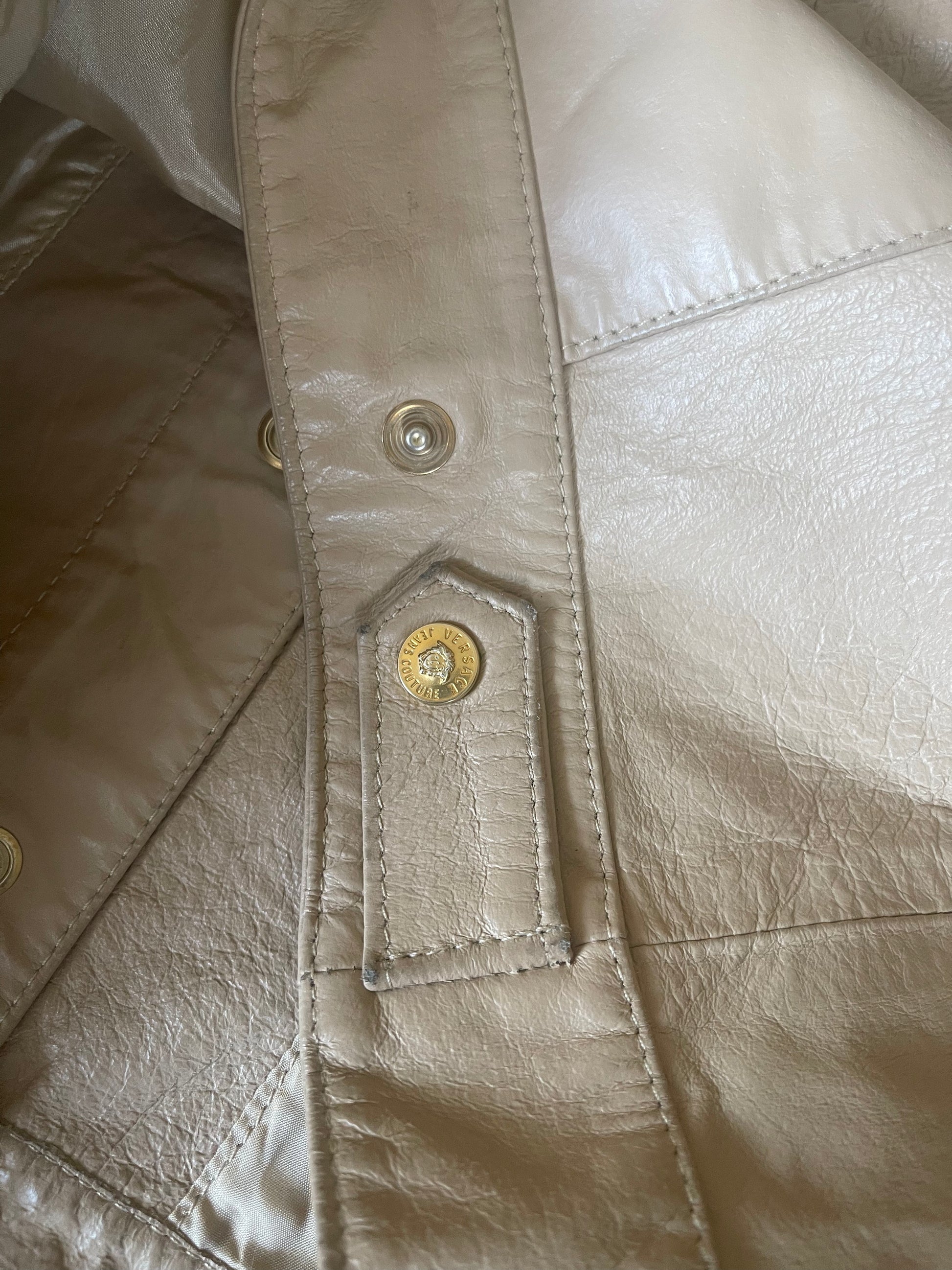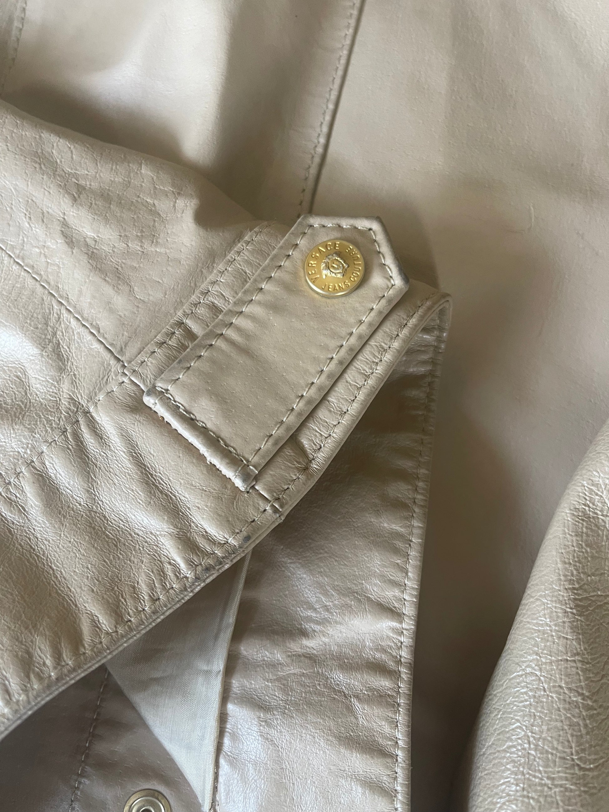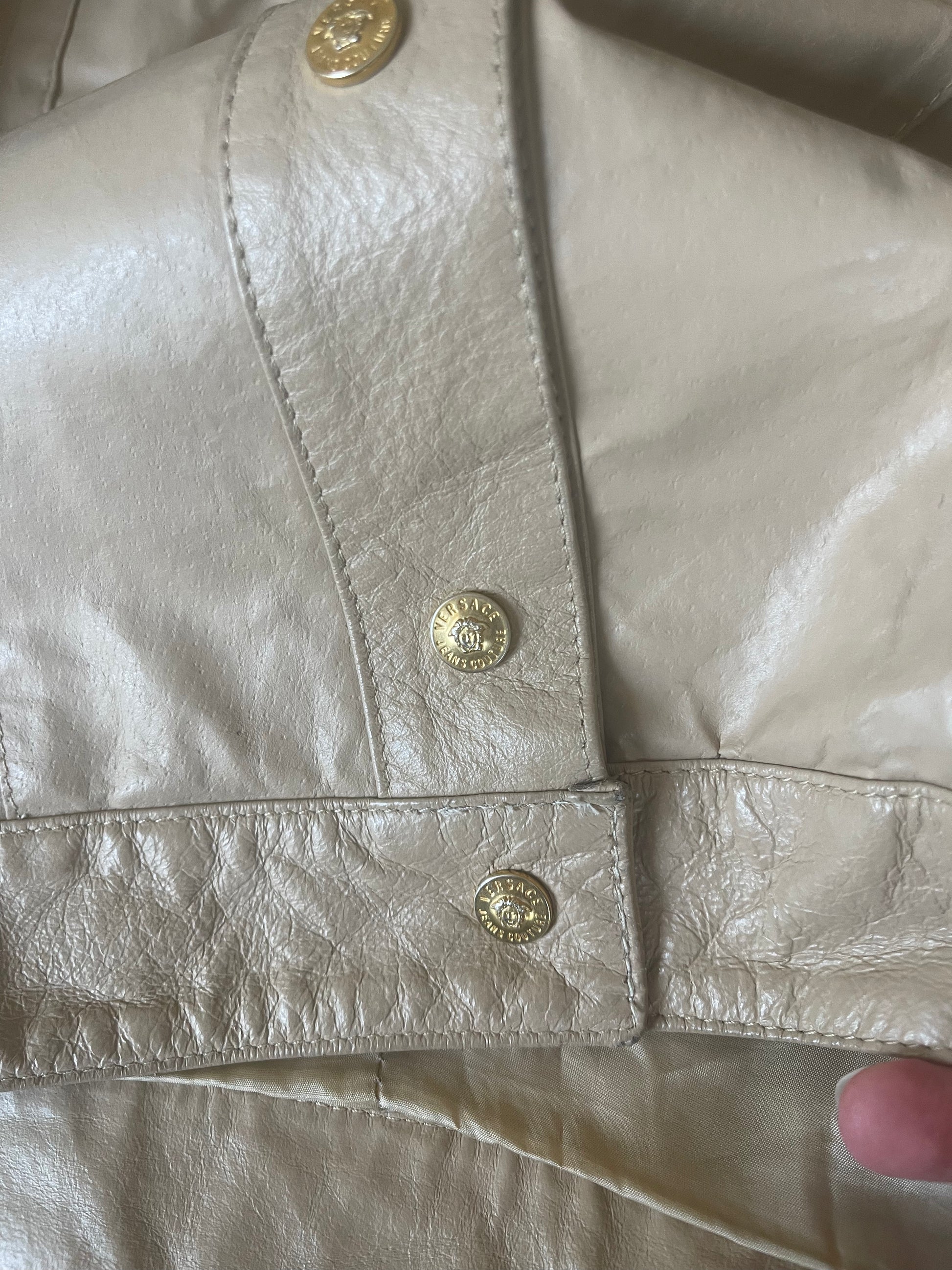 Vintage Y2K Versace Jeans Couture Leather Jacket Made in Italy Size M Beige
