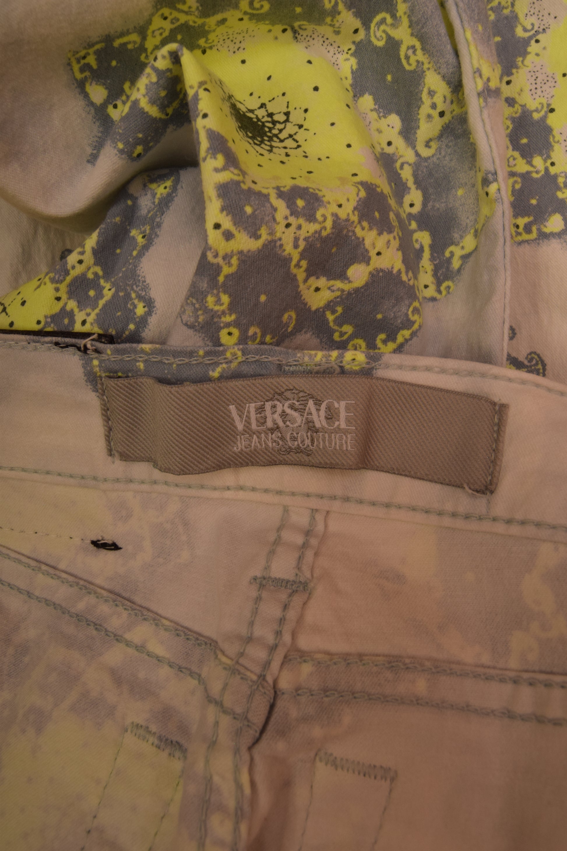 Y2K Versace Jeans Couture Trousers Mid Waist Made in Italy Abstract Pattern Multicolour Size XS-S