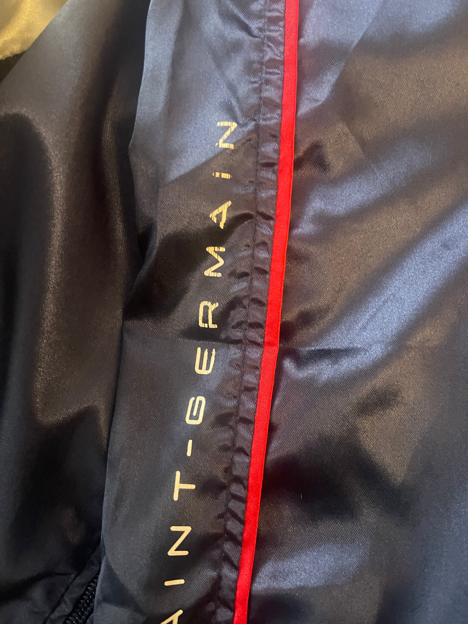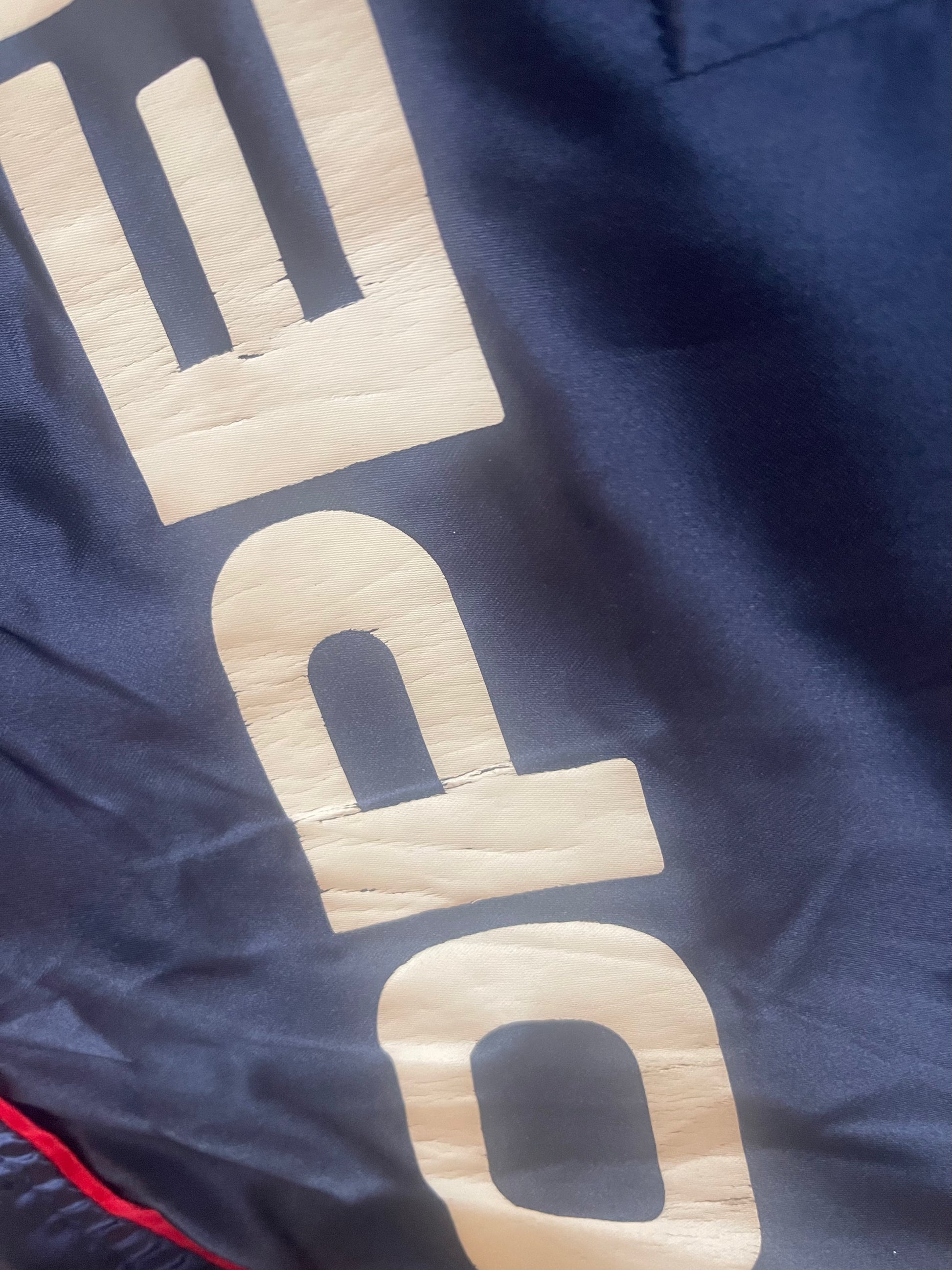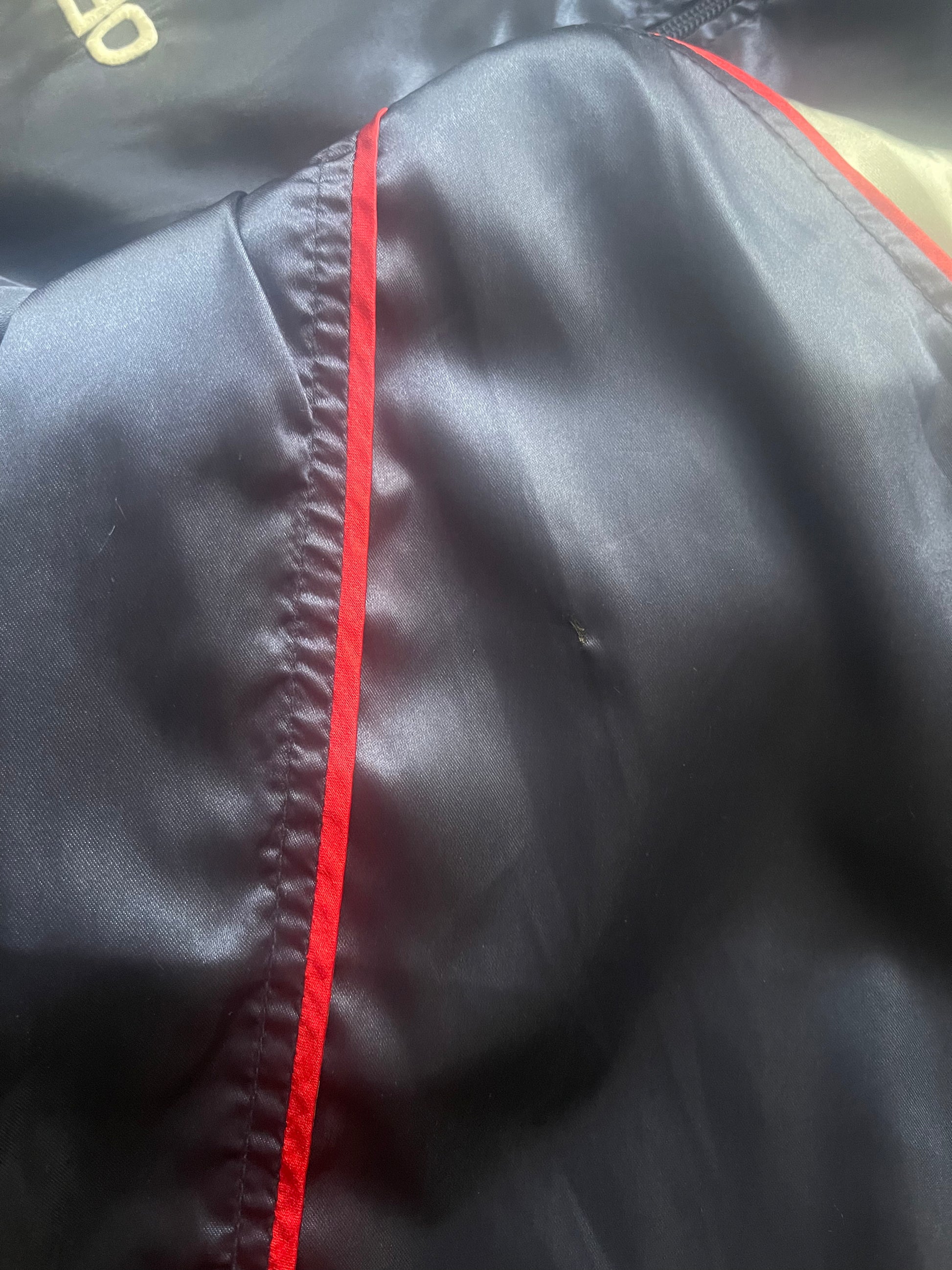 ā¼ļøThe jacket is in very good condition, with minor signs of wear that are only noticeable from certain angles and lighting. When worn, they are barely visible. Ā On the right sleeve, one small scratch and two faint trace that looks like it could be from a cigarette or fireworks, but it doesnāt penetrate the fabric (just lightly touched) and is hardly noticeable. It shows minor signs of wear on the PSG print on the sleeve and the Opel print on the back. See the last 6 photos.