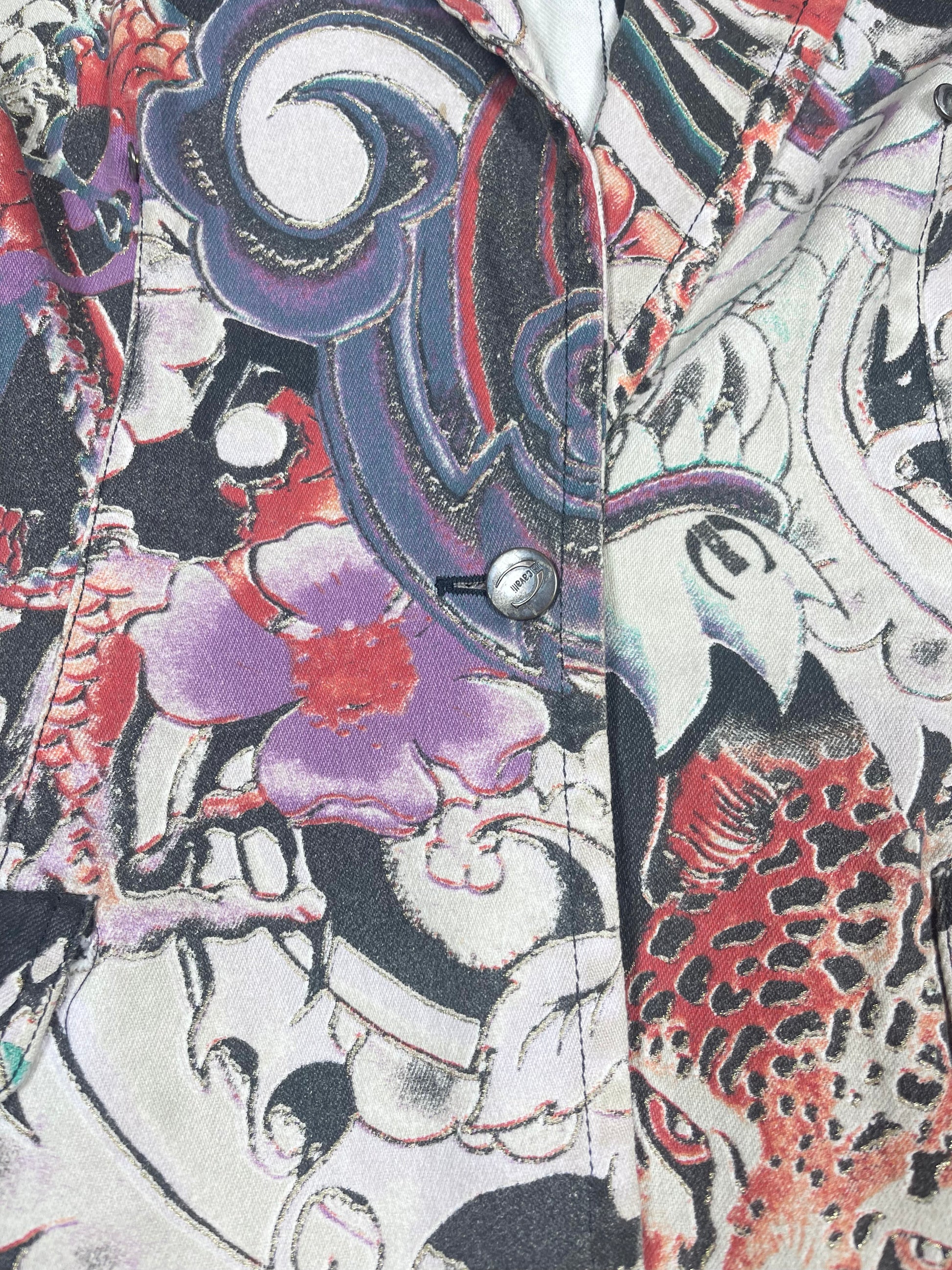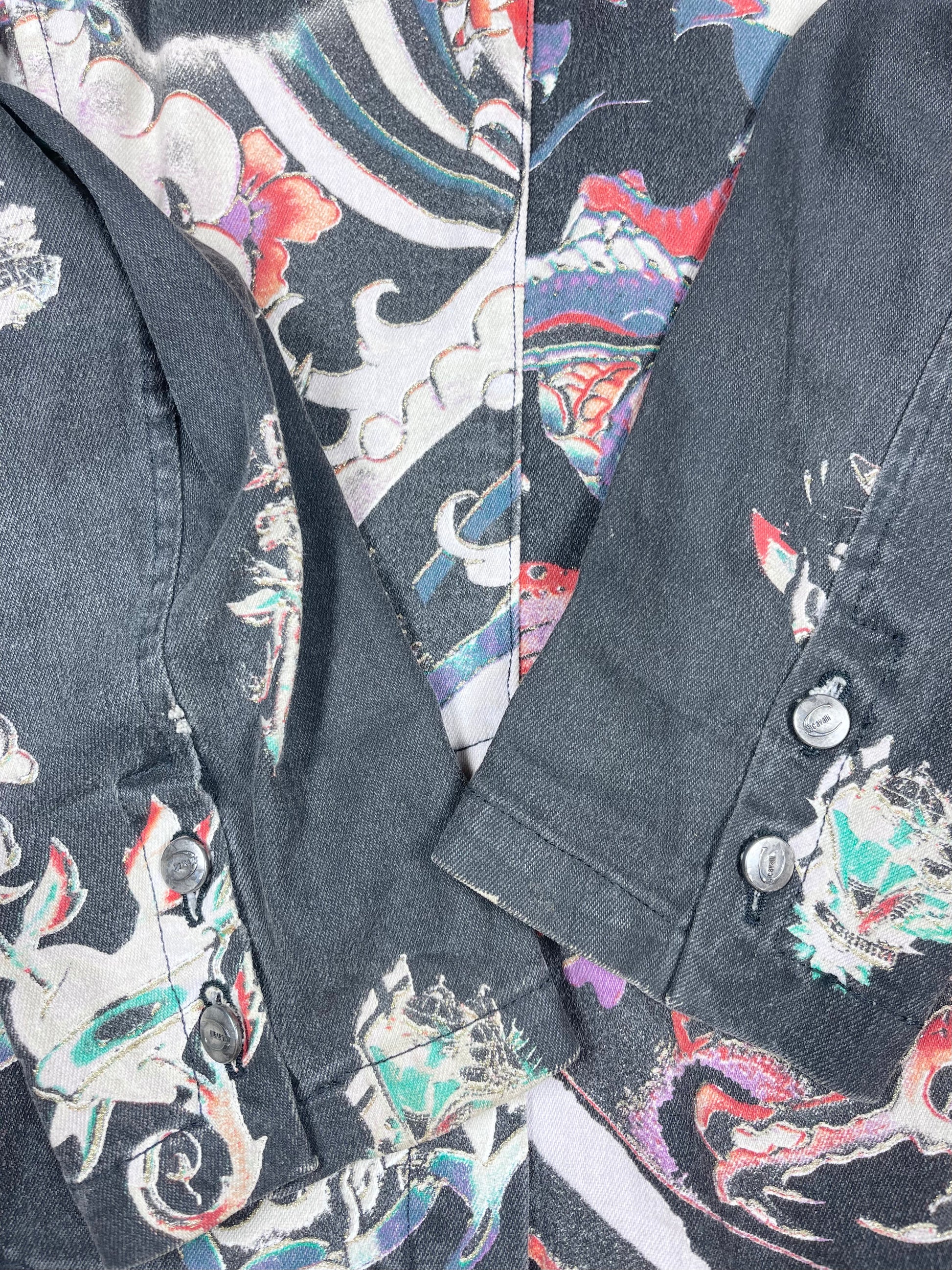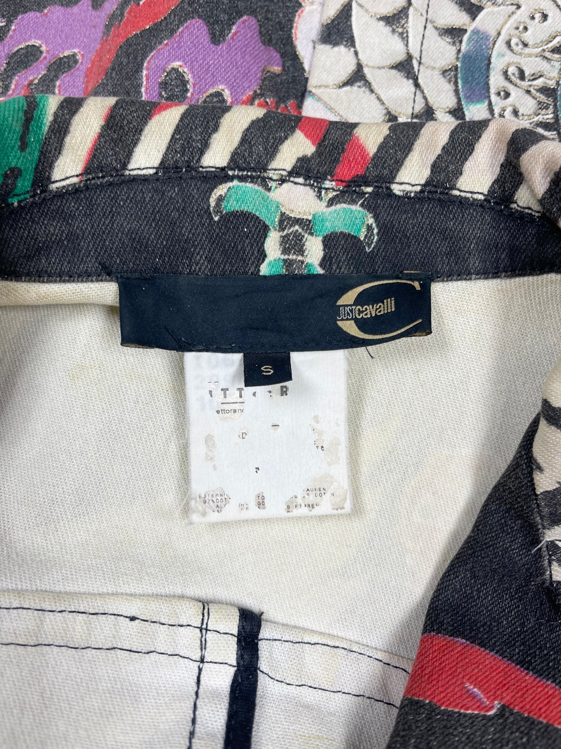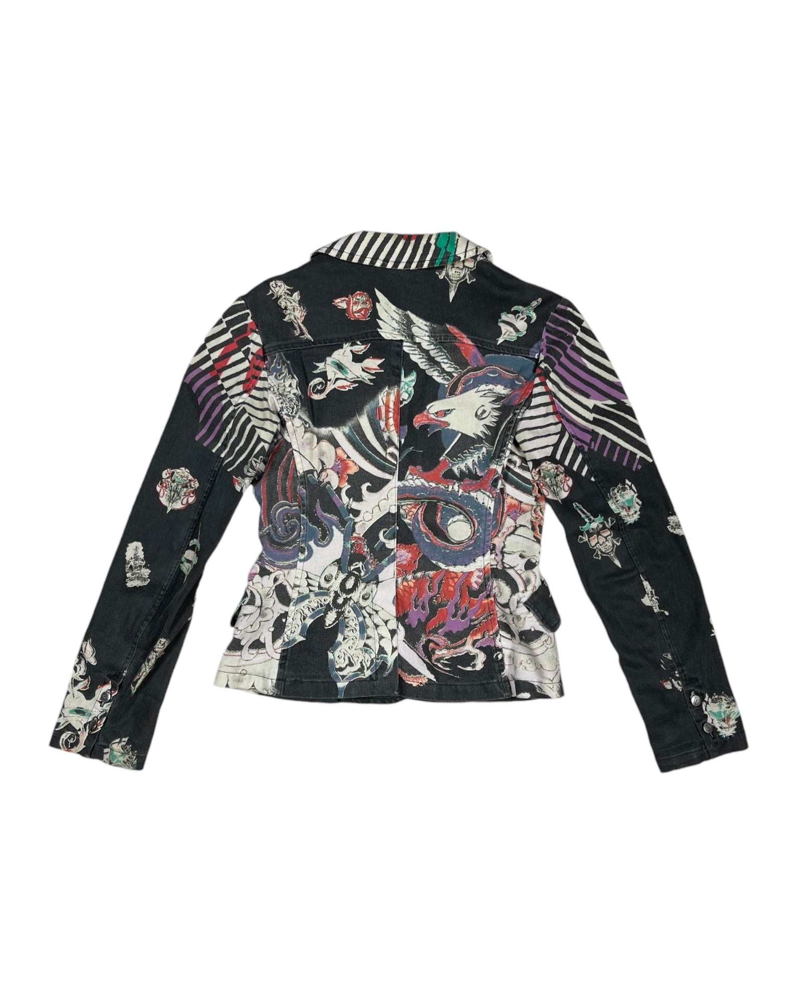 Y2K Just Cavalli Fitted Blazer Jacket Tattoo Pattern Eagle Skull Size S Made in Italy