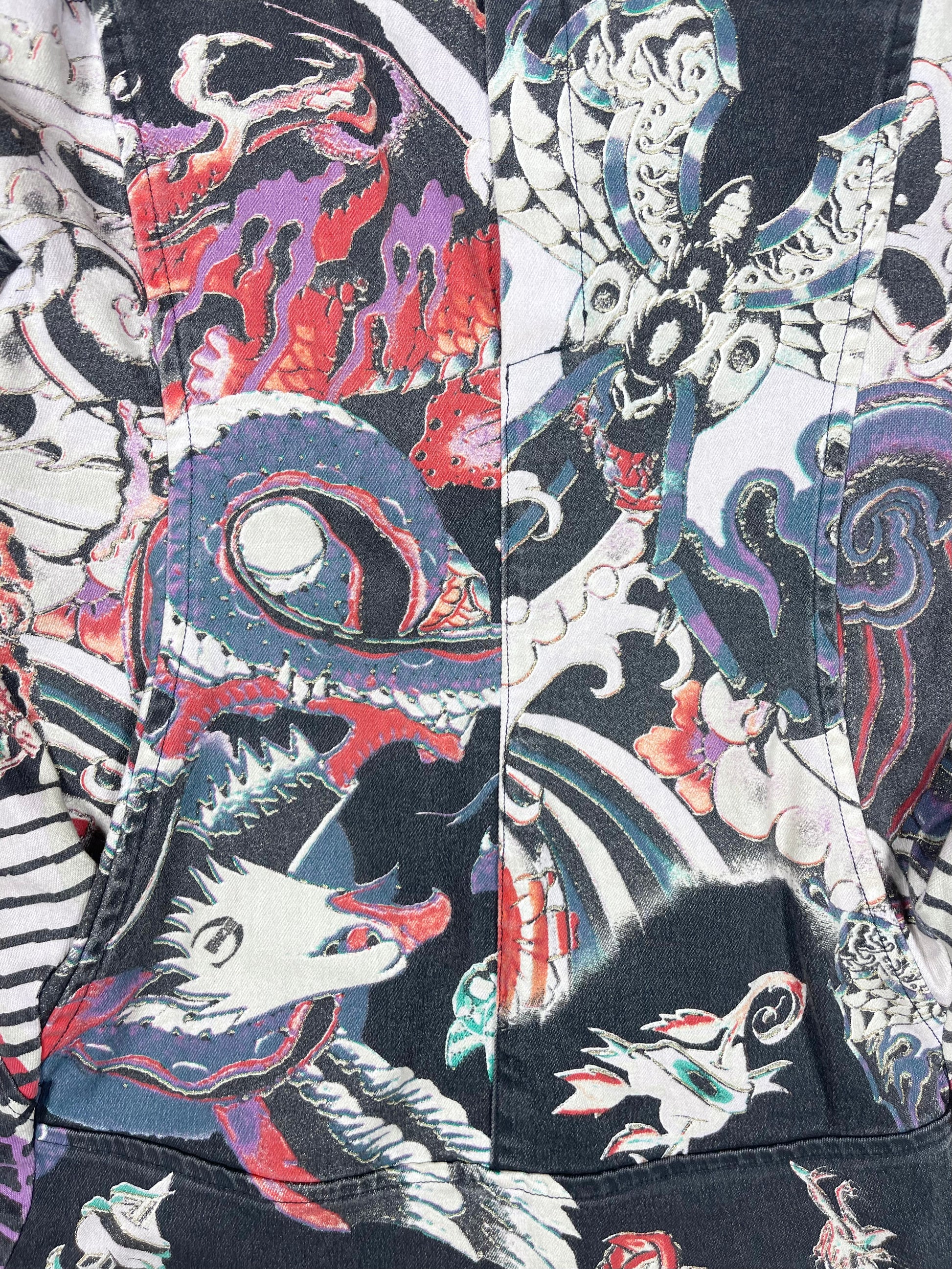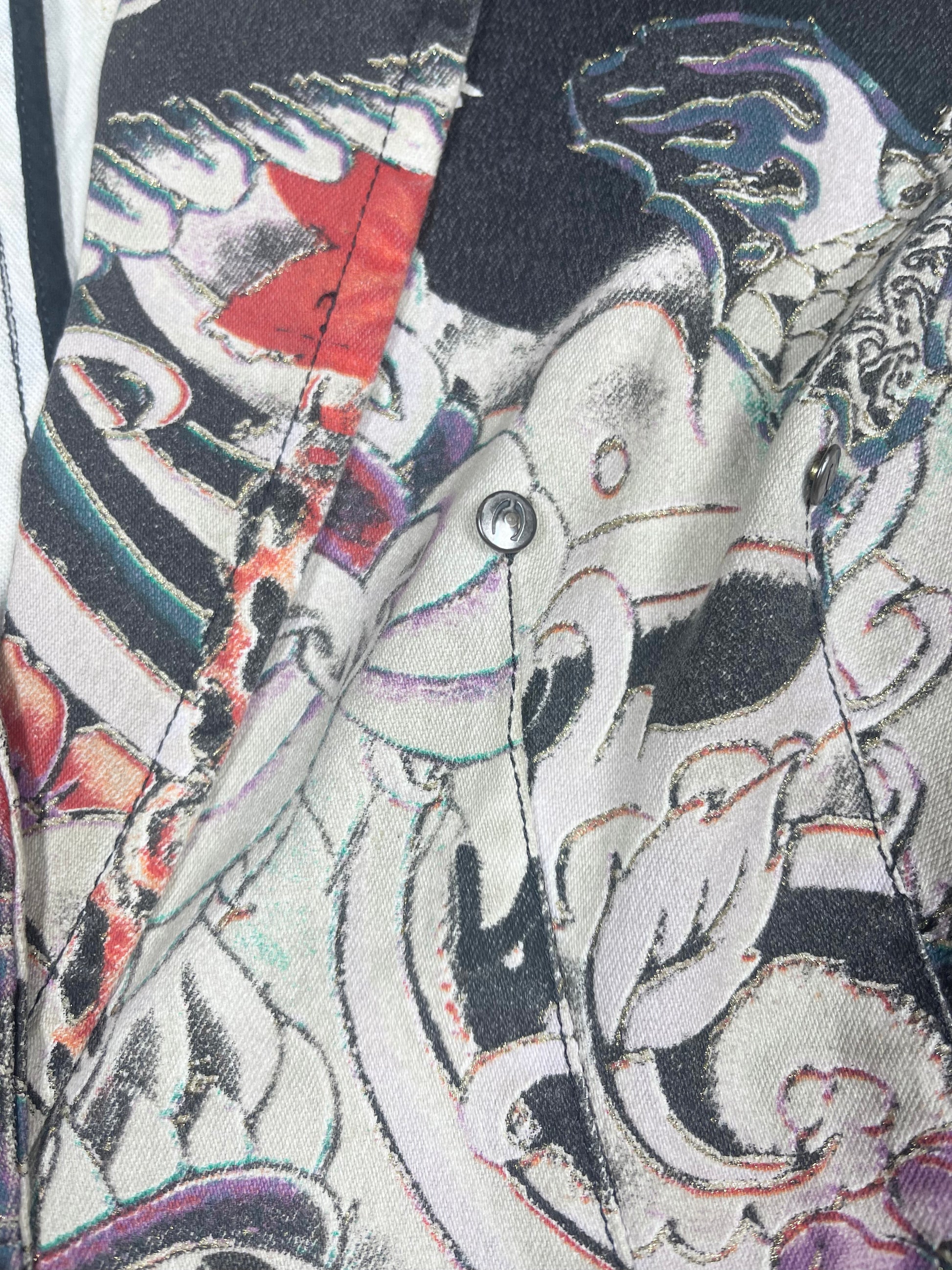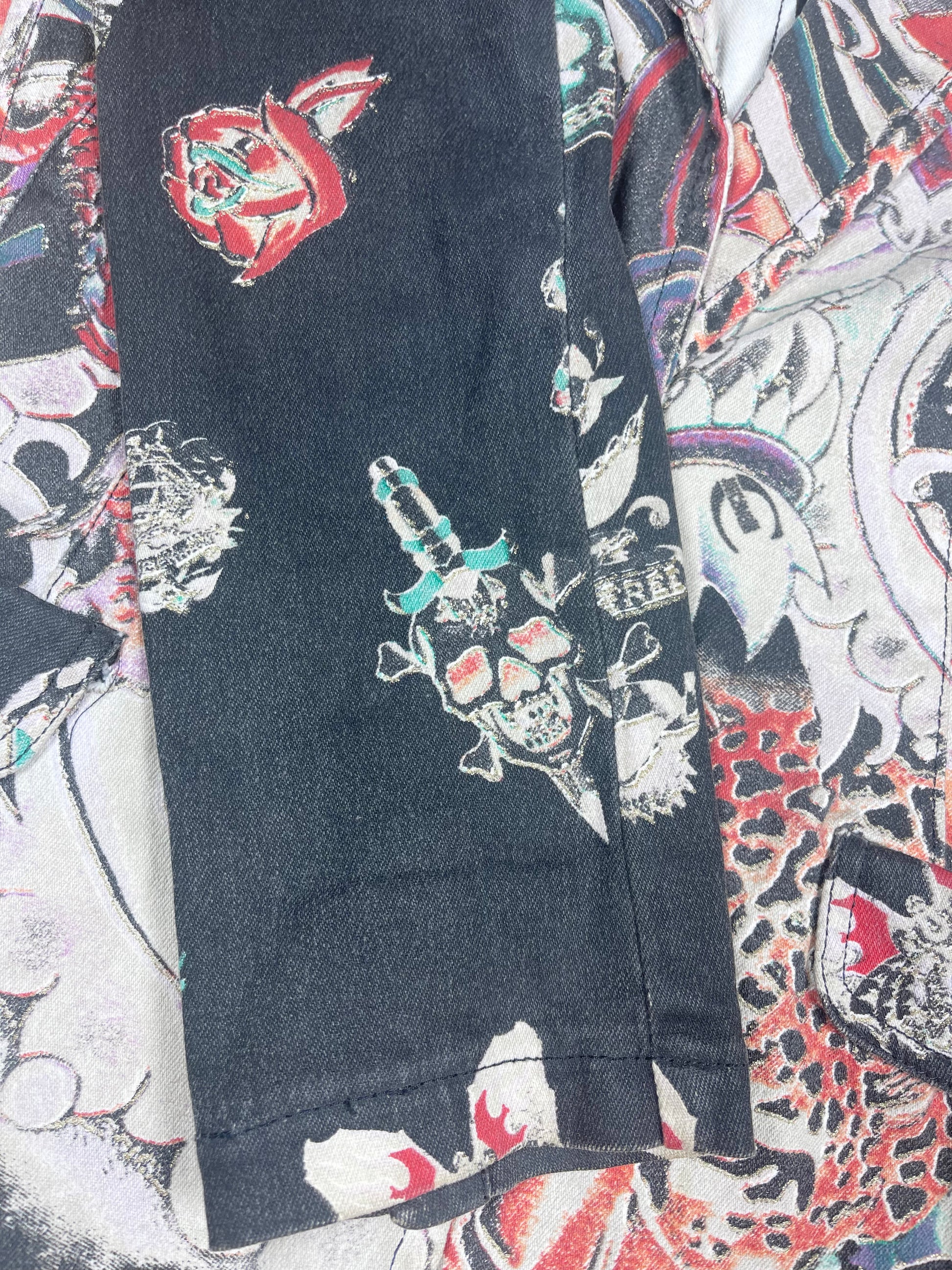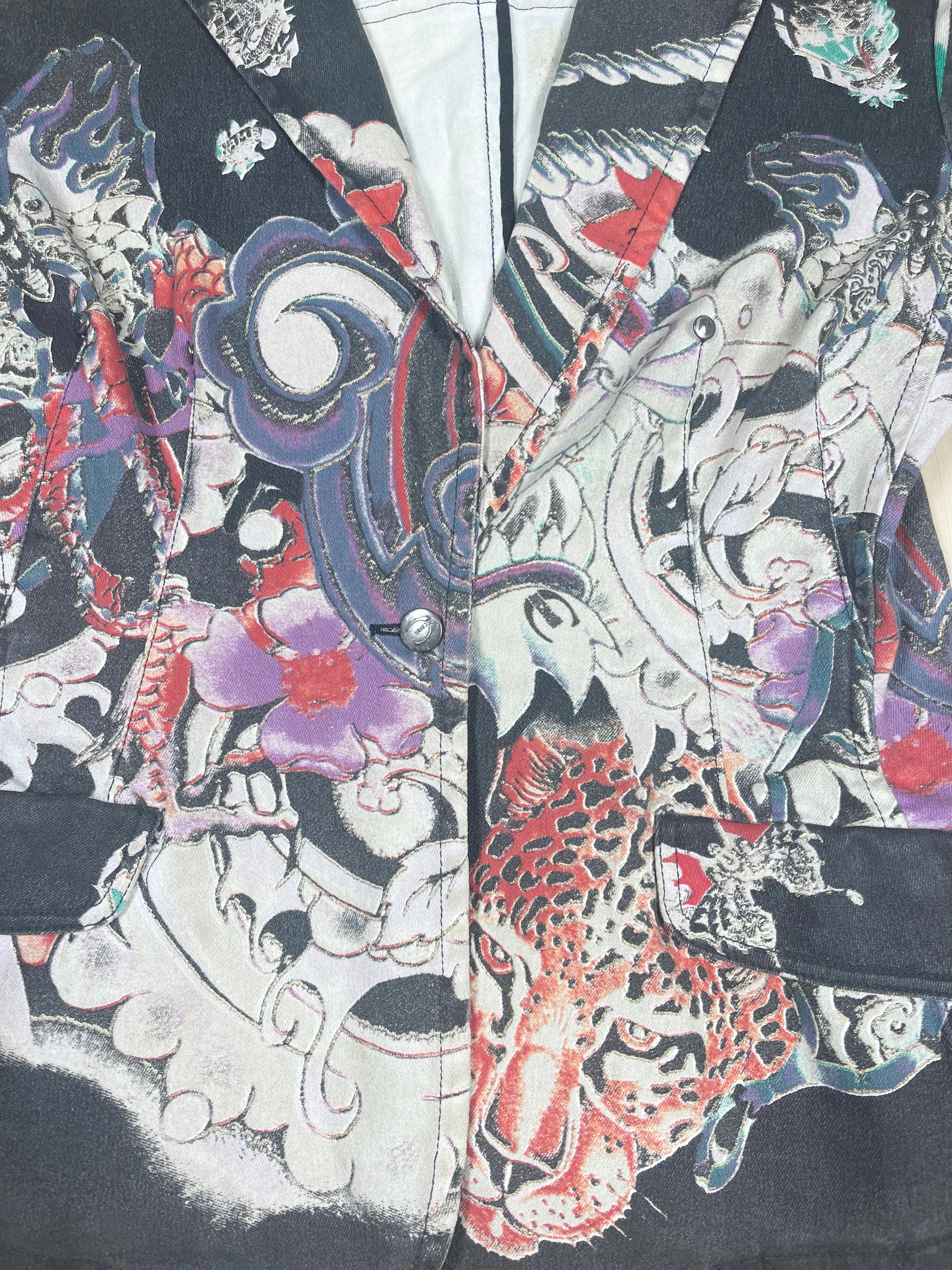 Y2K Just Cavalli Fitted Blazer Jacket Tattoo Pattern Eagle Skull Size S Made in Italy