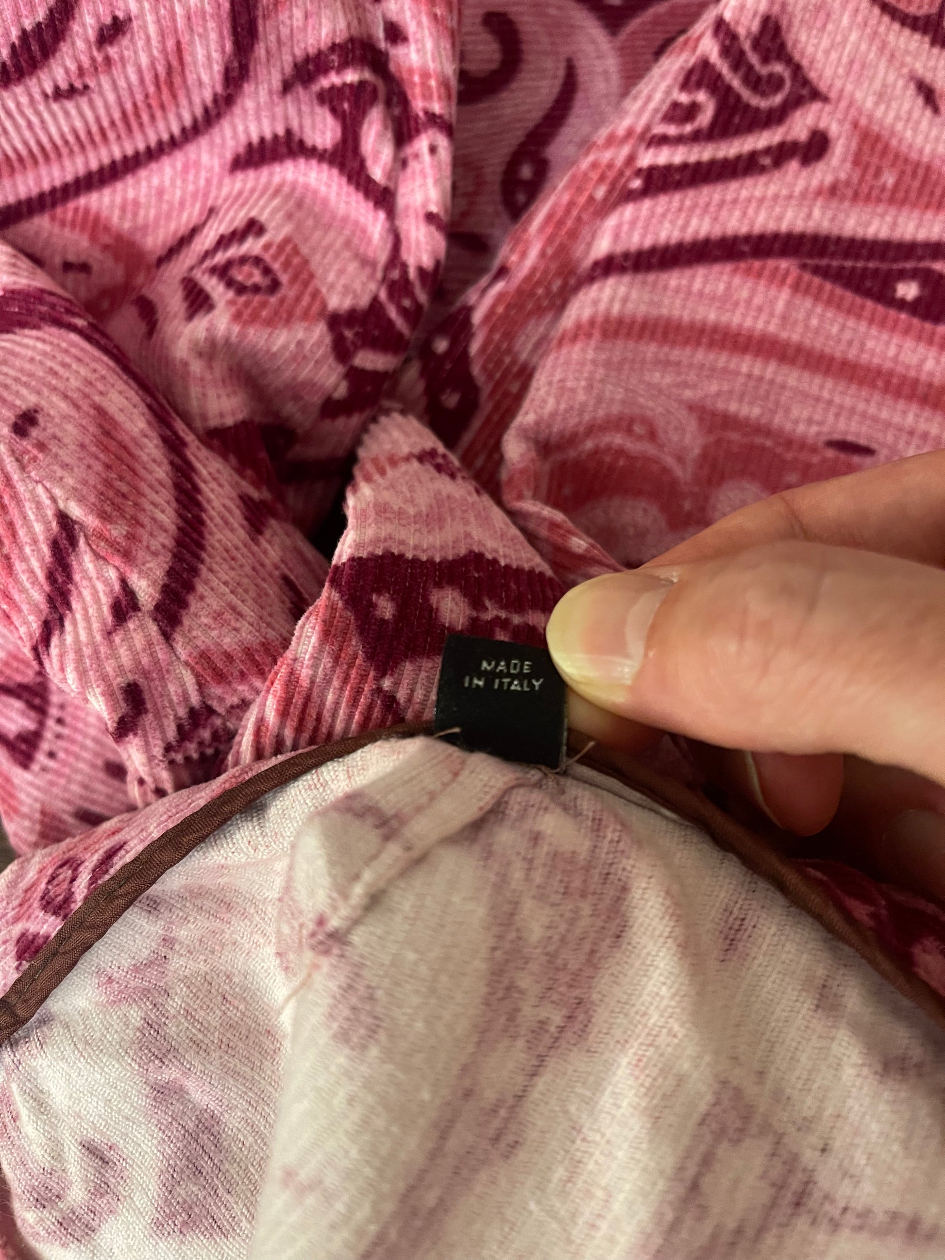 Y2K D&G Dolce & Gabbana Bootcut Pants Trousers Ittierre Spa Retro Psychedelic Paisley Barbie Pink & Plum Art Nouveau Vibe Corduroy Low Waist Made in Italy Size S-M