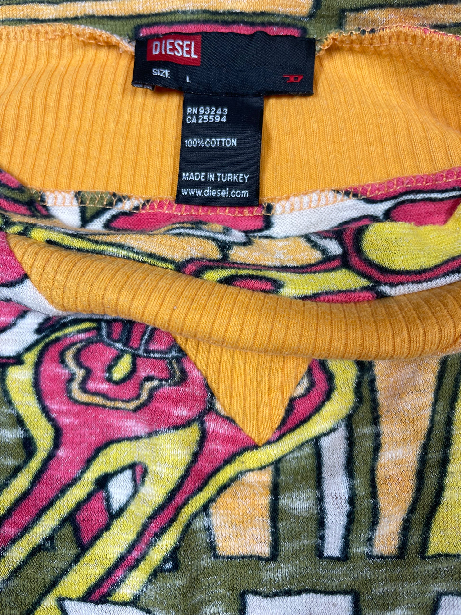 Y2K Diesel Blouse Slim Fit - Skin Tight Dropped Shoulders S-L Cotton Multicolor 2000 '00's